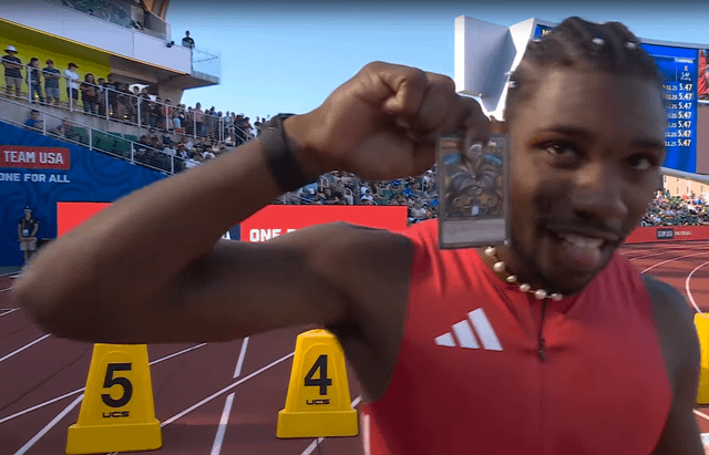 Noah Lyles really pulled out a Yu-Gi-Oh! card for his 100m intro. 😂