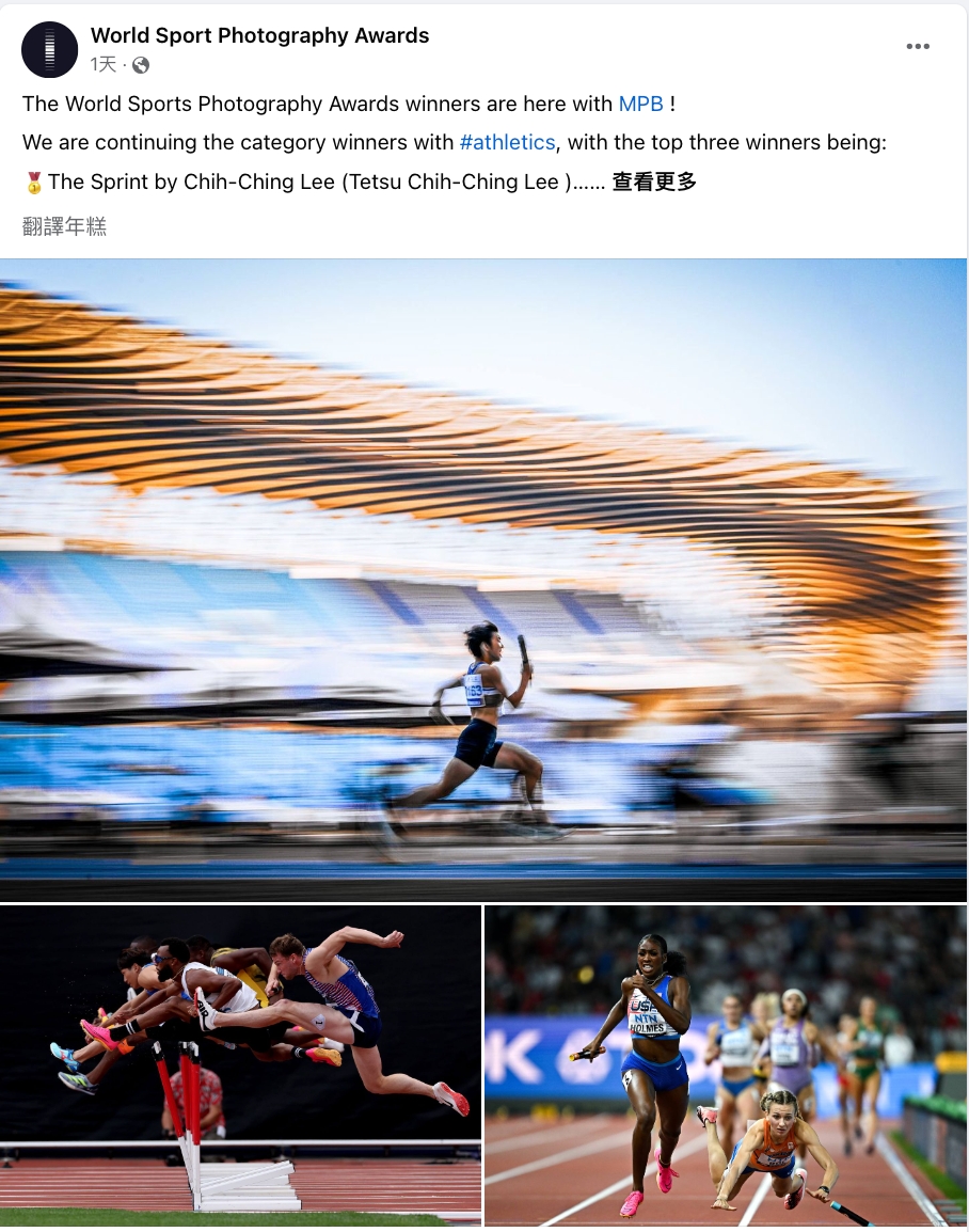 世界運動攝影獎於官方社群上大篇幅報導。( 圖 / World Sport Photography Awards )
