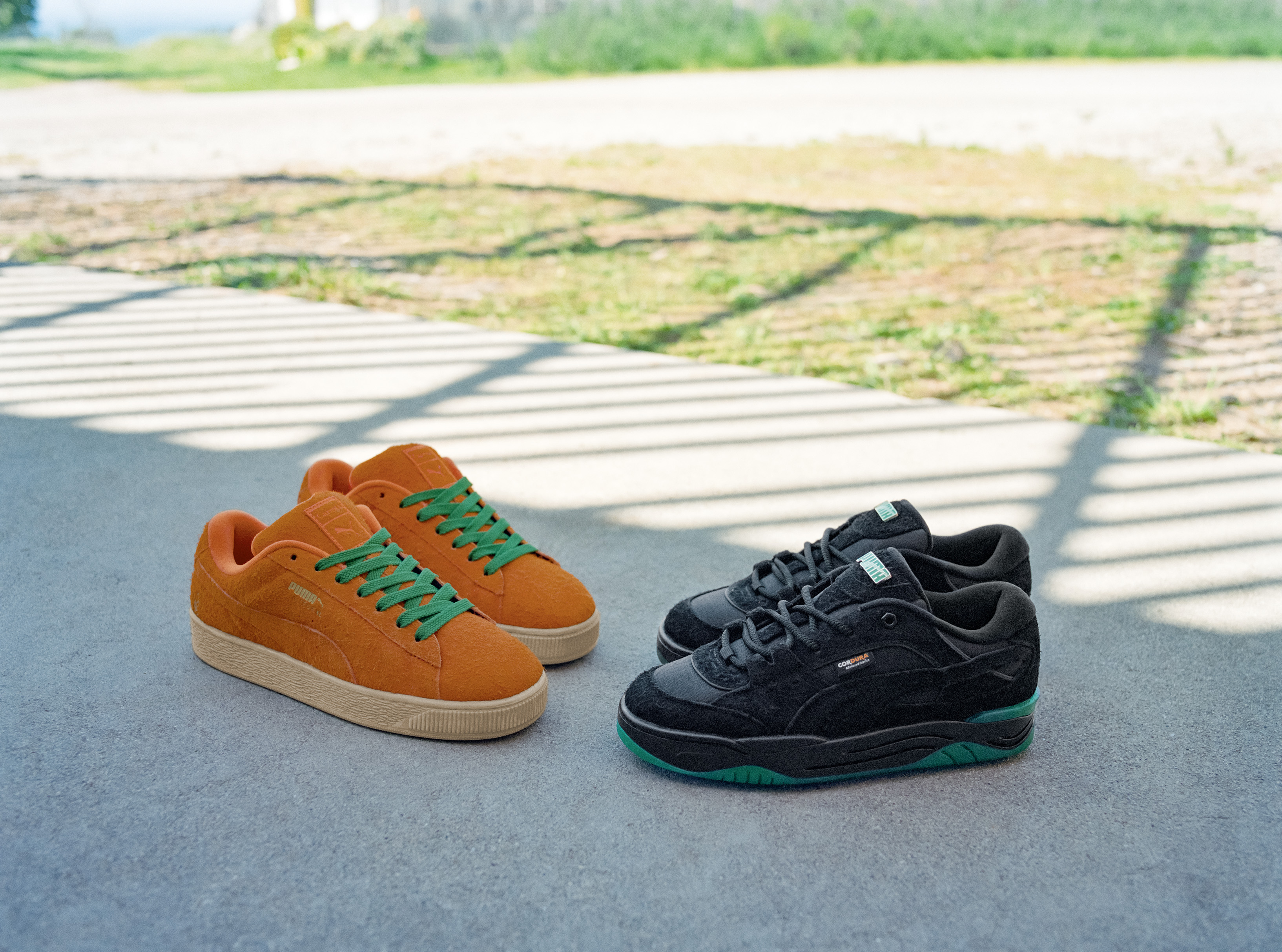 另外推出 PUMA-180 by CARROTS 是以 90 年代滑板風格為出發的復古潮鞋,將當代興盛的 Y2K 滑板文化及街頭設計元素注入其中,純黑鞋面以長毛麂皮異材質拼接高強度耐磨尼龍布料 CORDURA®,並於鞋舌加入浮雕 PUMA 字樣 LOGO,為低調風格中增添華麗小巧思,最後搭配墨綠厚底流線大底將過去與現在完美融合,打造新復刻街頭風格。