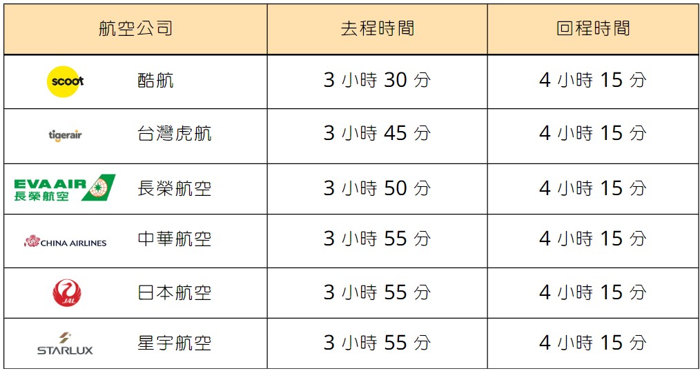 目前從桃園國際機場(TPE)直飛往新千歲機場(CTS),航程約 4 小時。