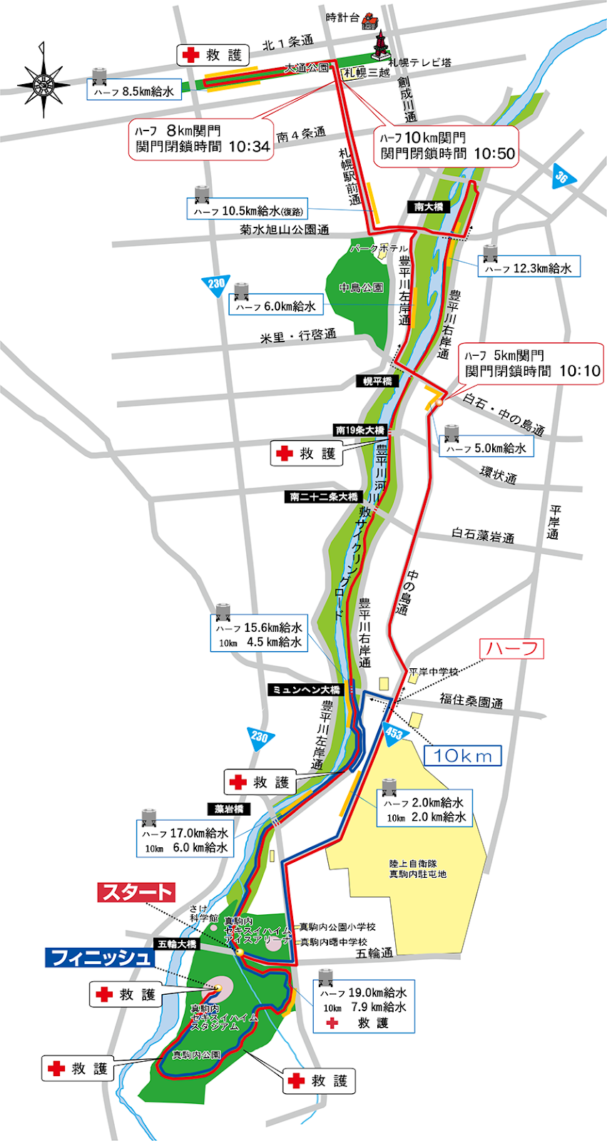 半馬及 10k 路線高度圖。(圖片來源:札幌馬拉松官方)