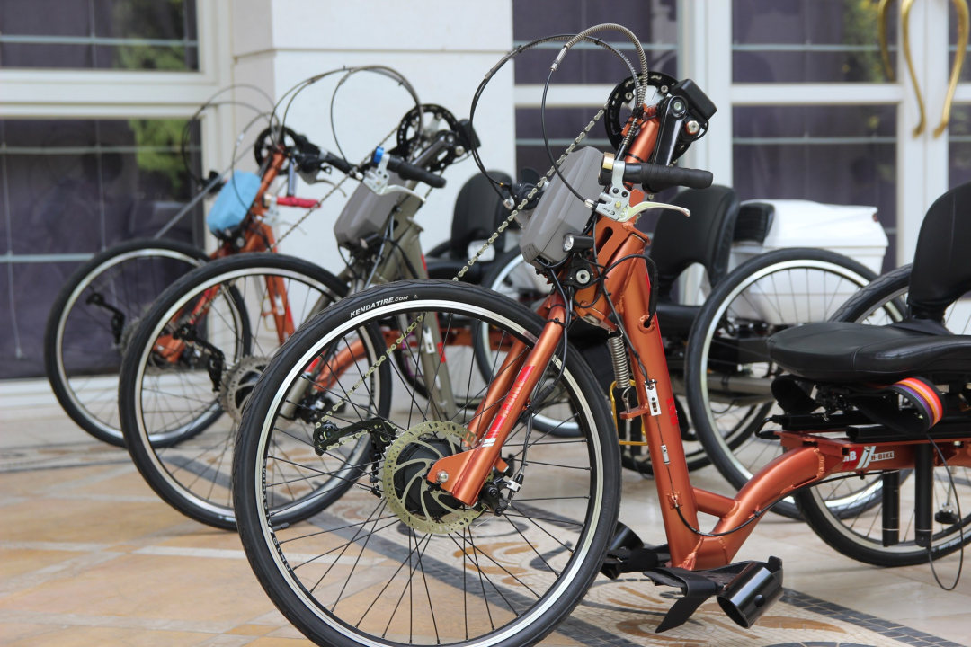 廖主任以一位現居嘉義、80 多歲的爺爺為例,他雖不是身障族群,卻以手搖車作為運動方式,「比起騎自行車,爺爺更偏愛騎手搖車,因為不只用到手臂力量,核心肌群也一起加入,他透過手搖車改善長年排便不順的困擾呢!」此外,高齡者騎自行車難免會有平衡感不好、摔倒的擔憂,手搖車的三輪結構還可以避免受傷風險。