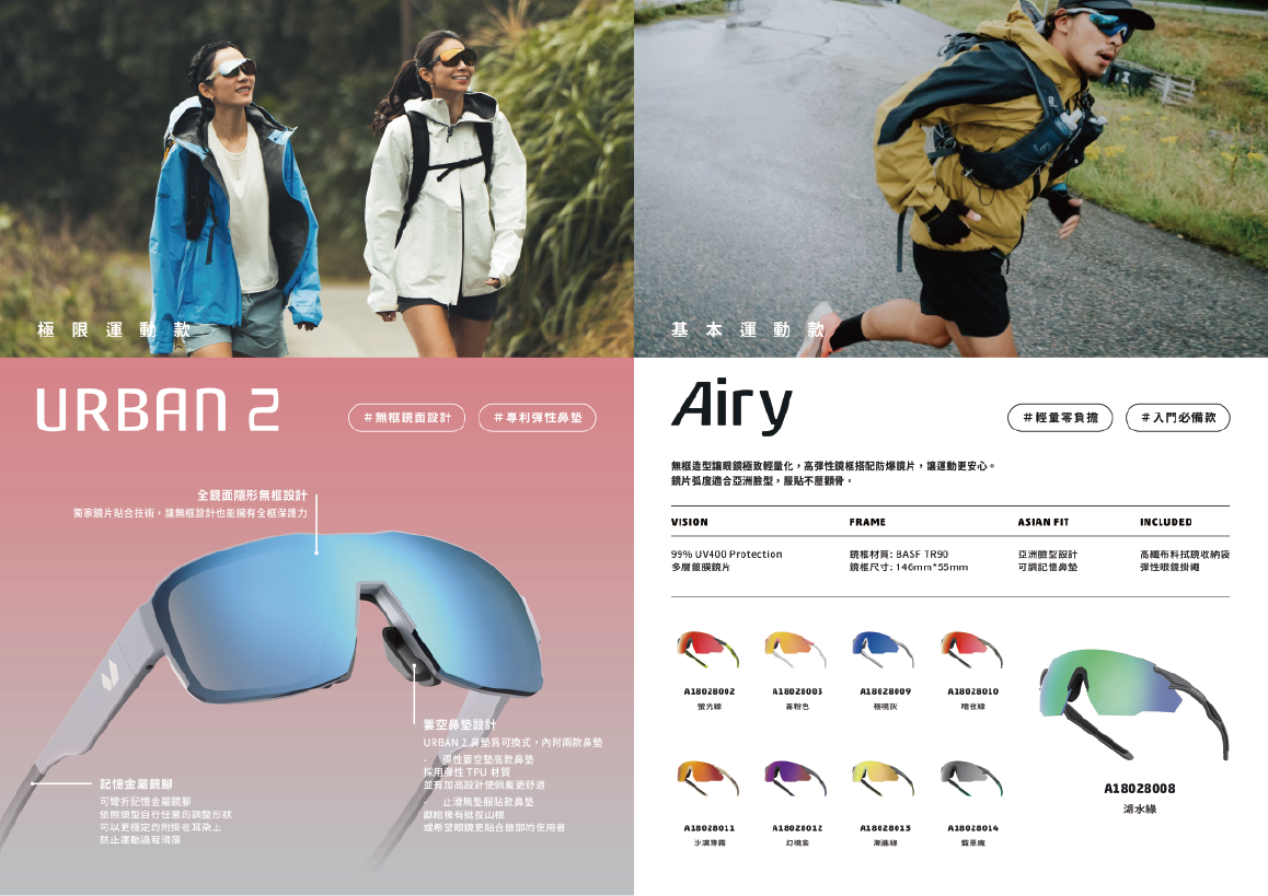 專為跑者設計,高彈性鏡框搭配防爆鏡片,讓運動更安心。