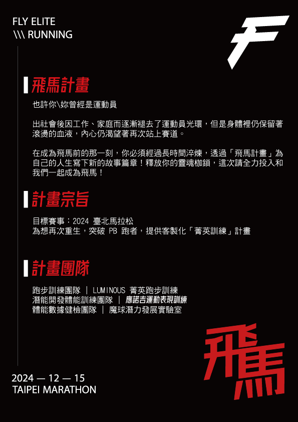 【運科訓練】飛馬計畫-臺北馬拉松菁英跑步訓練班