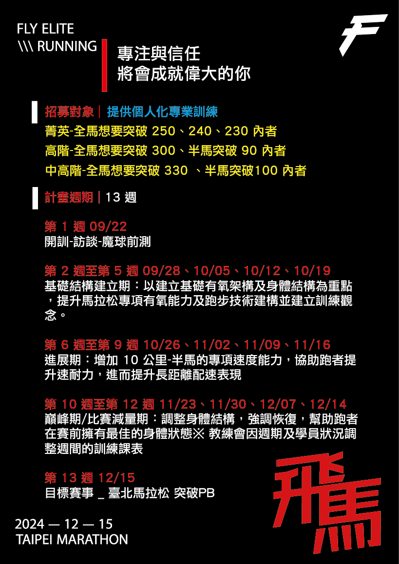 ※ 未具有 2024 臺北馬拉松名額者不符訓練營報名資格。