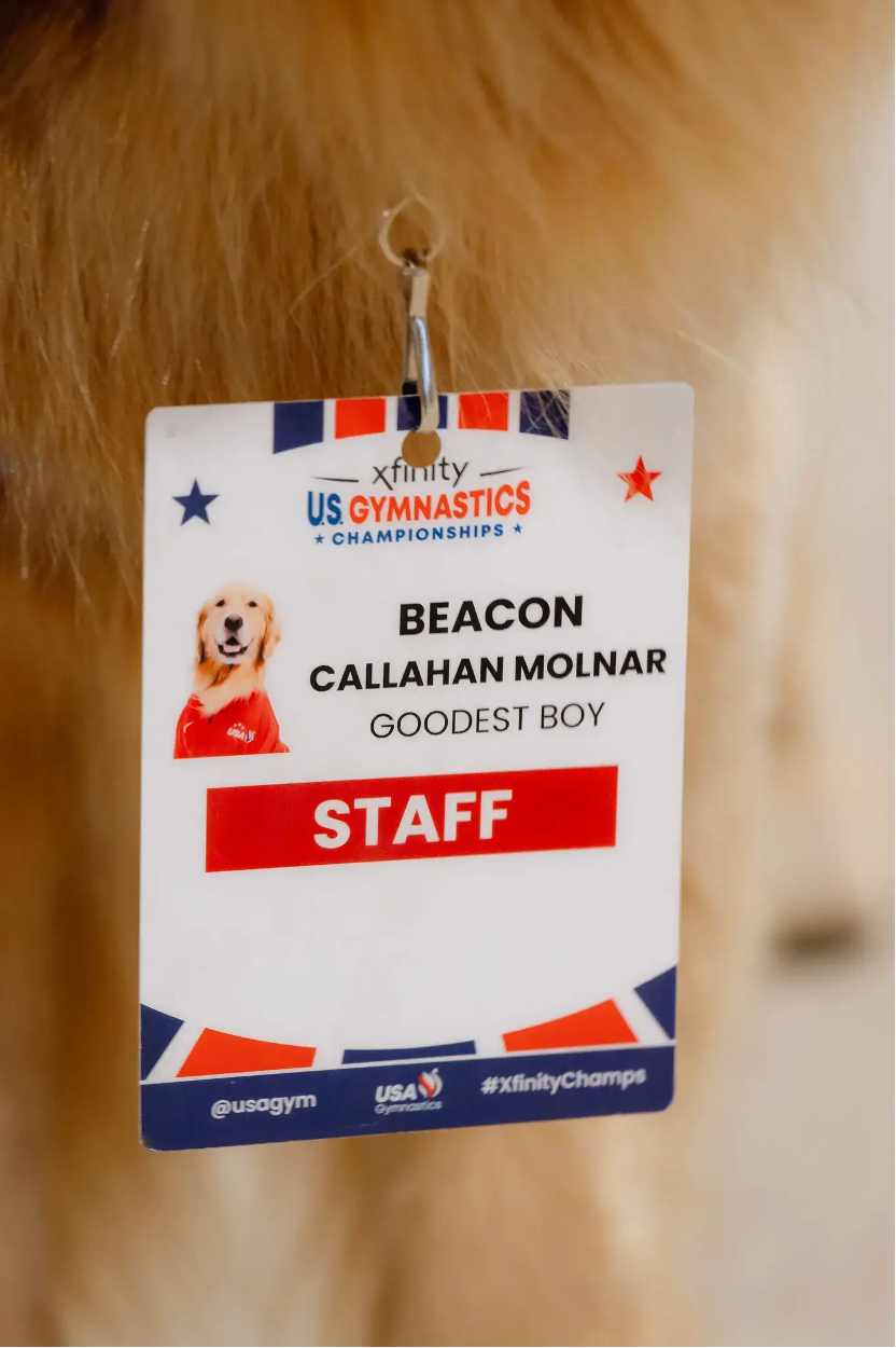 運動員的身心健康在這幾年成為各國隊伍關注的領域之一,在這個各種事物節奏都變得很快的時代,運動員的競爭越來越激烈,因此僅僅關注選手們的身體健康遠遠不足,身心狀態也同樣重要。Beacon 在美國體操協會有最棒的男孩(Greatest Boy)之稱,牠是美國體操協會第一隻通過 Pet Partners 認證的治療犬,牠可是擁有有官方工作證的汪汪喔~