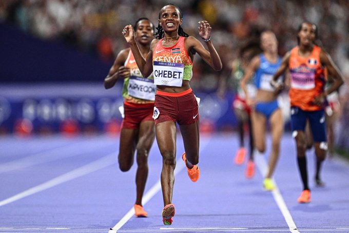 在巴黎奧運會上,Chebet 完成了一個不可思議的壯舉-她成為第一位在奧運會上同時奪得 5000 公尺和 10000 公尺金牌的女性運動員,這讓她在田徑歷史上留下了濃墨重彩的一筆。尤其是 5000 公尺的比賽,被她認為是最具挑戰性的項目。她回憶道:「我知道 5000 公尺會是最艱難的一場比賽,但當我贏下這場比賽後,我就知道 10000 公尺並不會太難。」