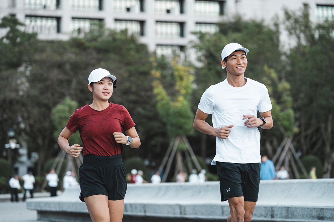 UA Storm 的防潑水跑鞋的舒適性,讓專業跑者曾晴與桀銘,為此讚譽有佳。(照片來源:Daniel )
