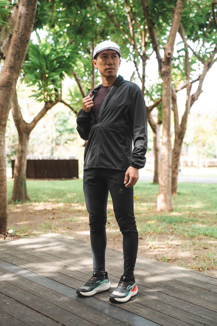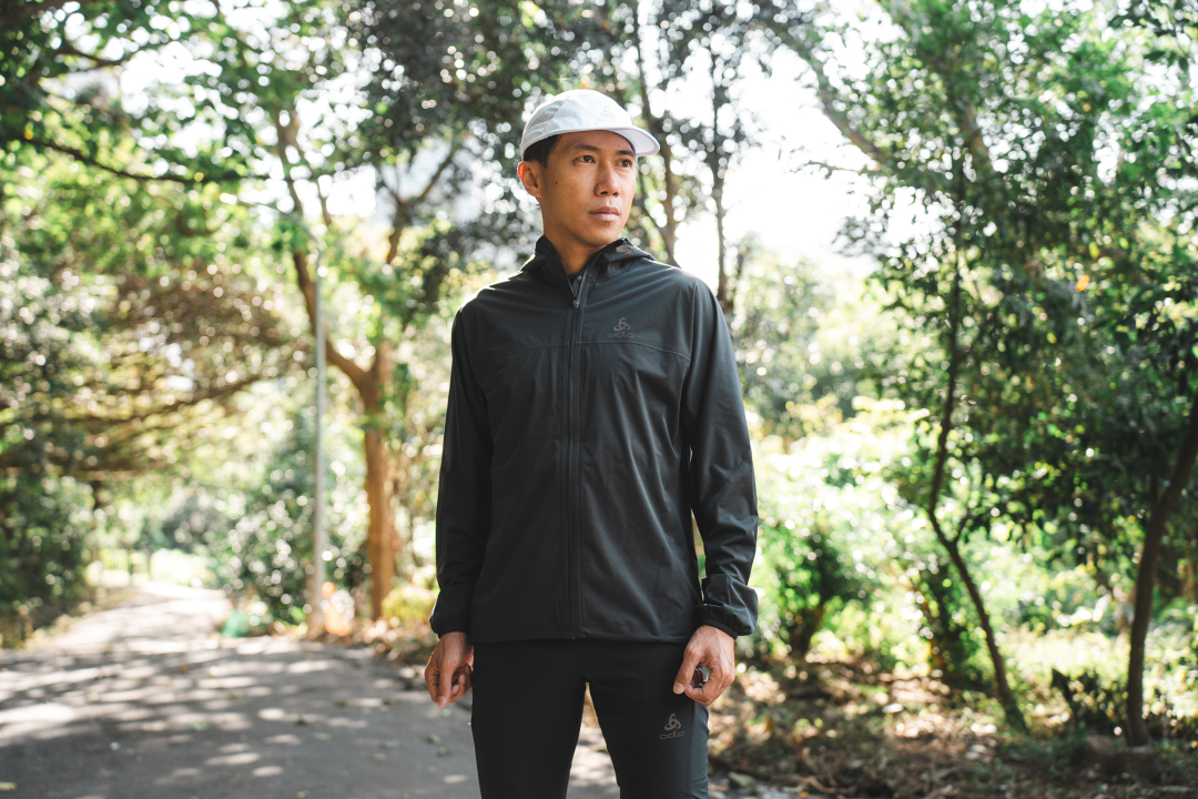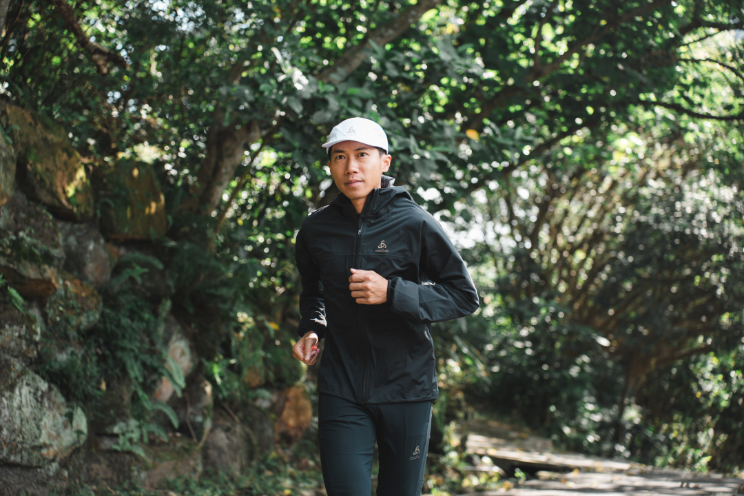 ODLO X-LIGHT運動帽與 ZEROWEIGHT 外套,輕盈舒適又能阻擋風雨,皆成為彥博秋冬訓練的好夥伴。 (圖|Daniel)