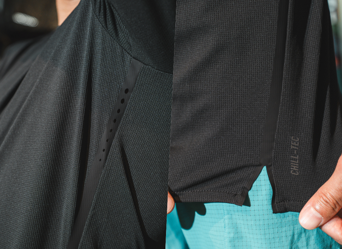 ODLO Chill-Tec 長袖 T-SHIRT 側邊熱熔壓條縫線、對流孔洞,讓透氣度最大化,進而達到涼爽效果。(圖|Daniel)