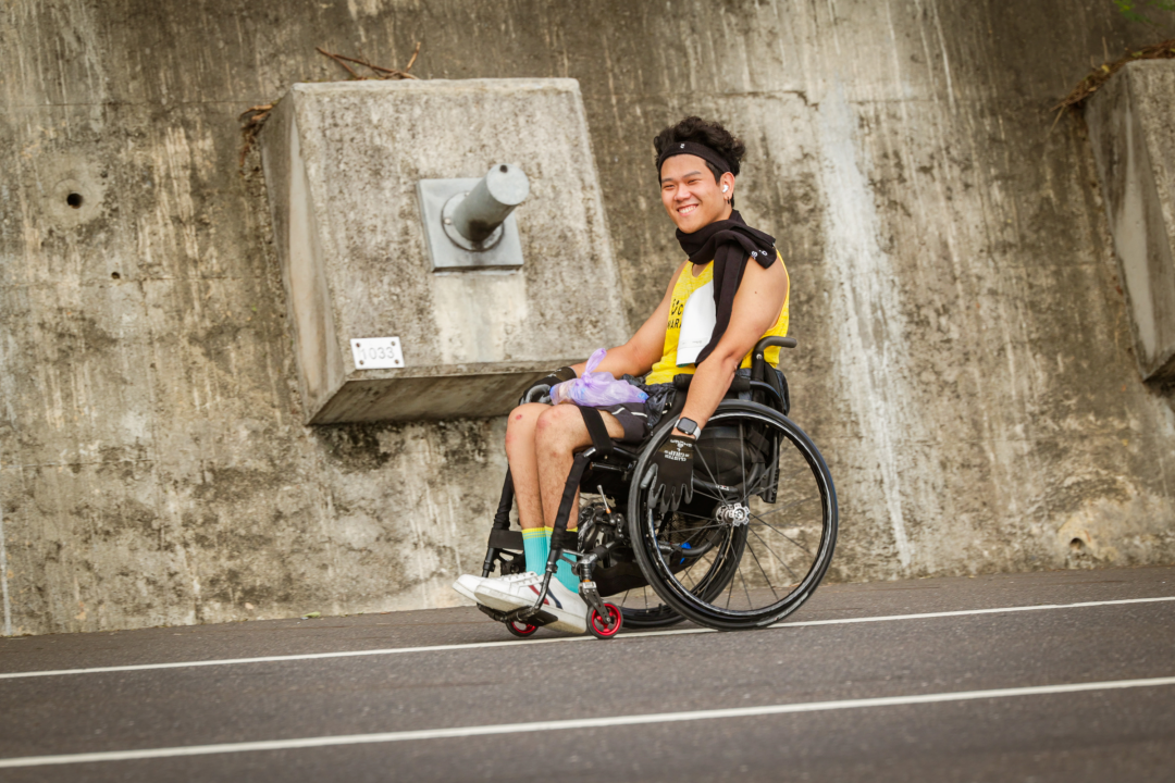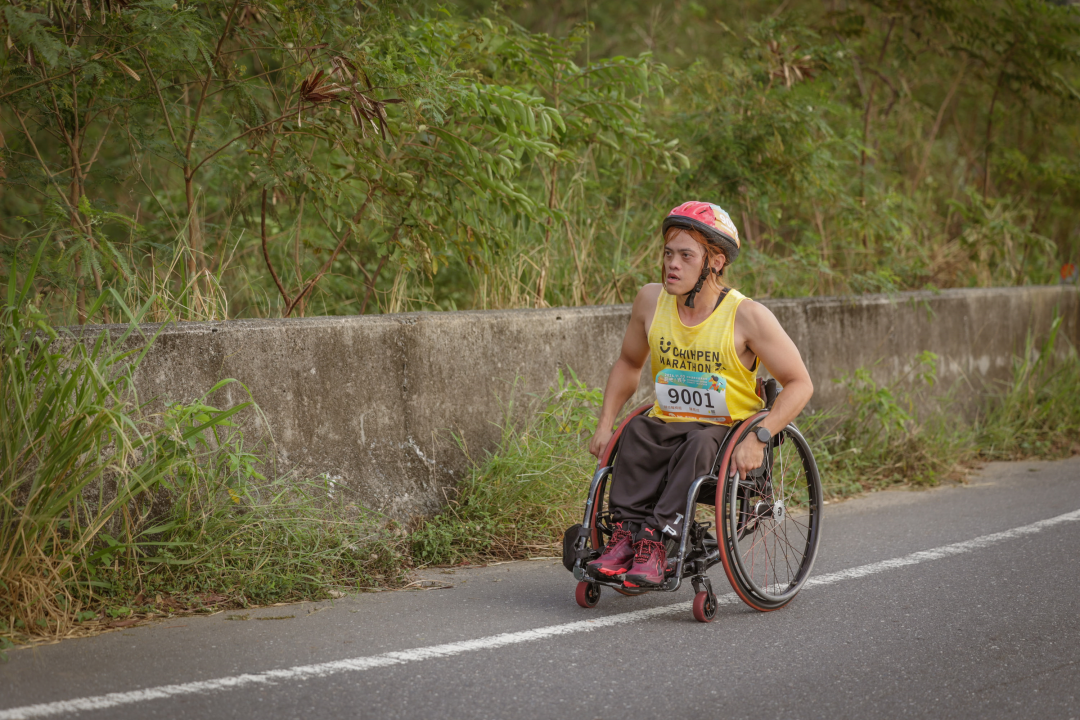 同為 2023 年杭州亞帕運輪椅籃球國手的邱宇哲,也是首次挑戰馬拉松,選擇 21 公里半馬組作為入門。 不過平常從事的輪椅籃球項目大多是在室內進行,也讓他感受很不一樣:「有一些爬坡啊、一些馬路有一點斜斜的,會比較吃力一些。」但整體的賽事氛圍營造得相當好也讓他很感動,他分享:「加油團還有剛剛要起步時的那個鳴槍聲,還蠻讓人感動的。」