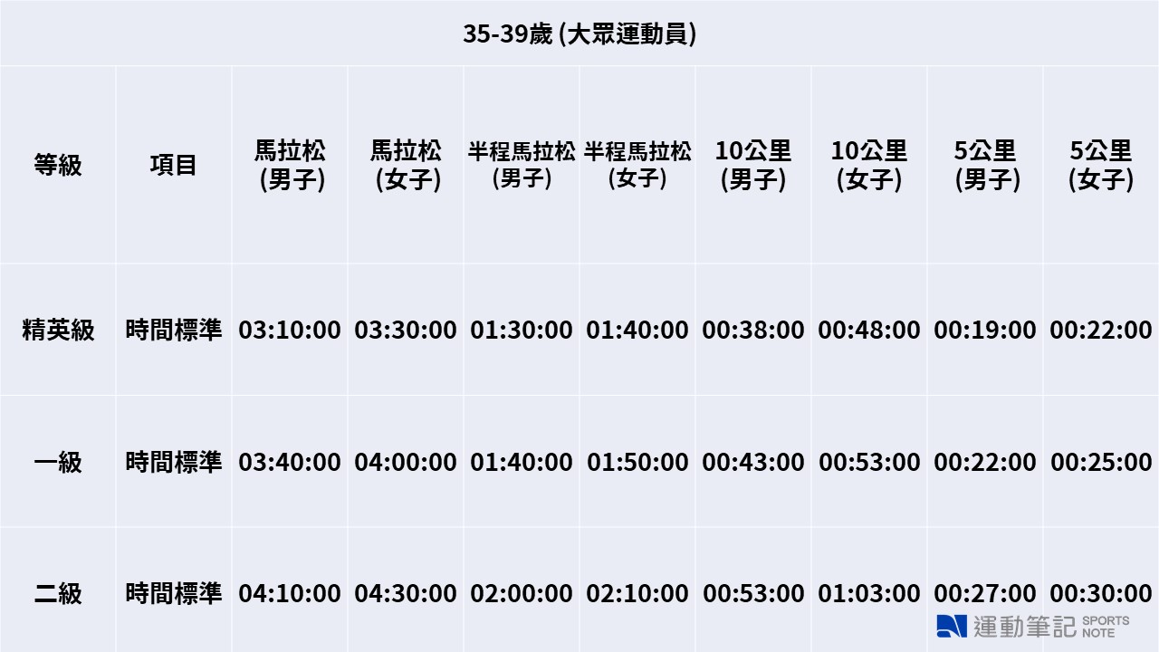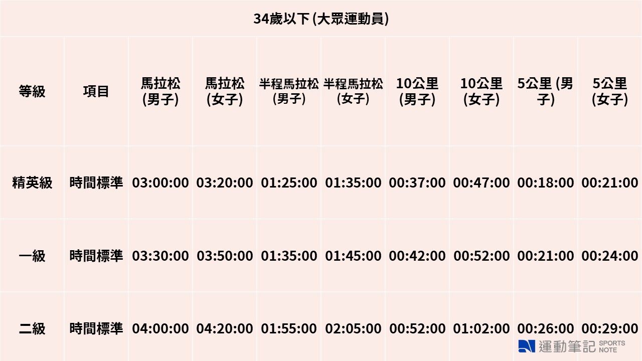 馬拉松專業運動員分級表 圖|運動筆記 Barry