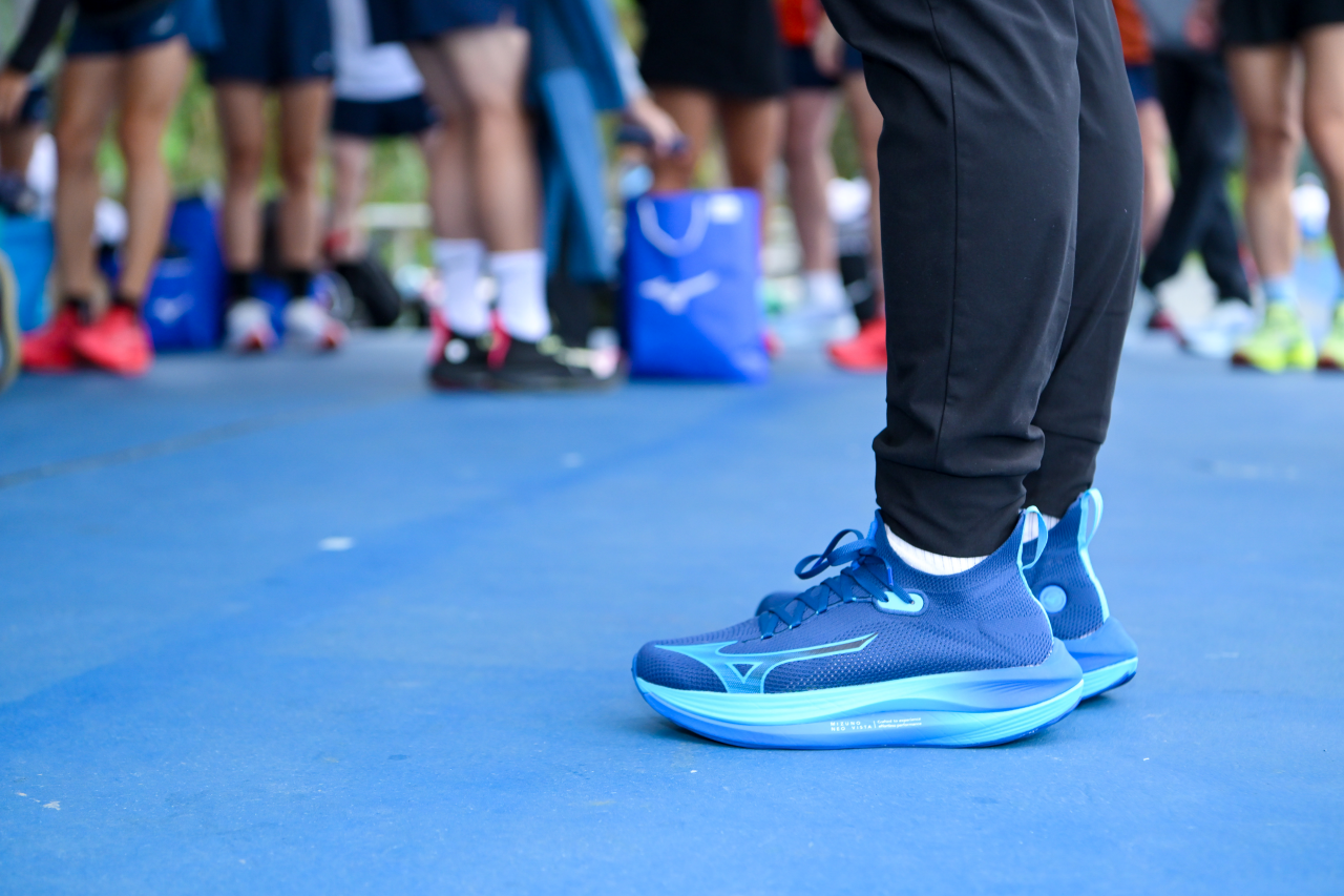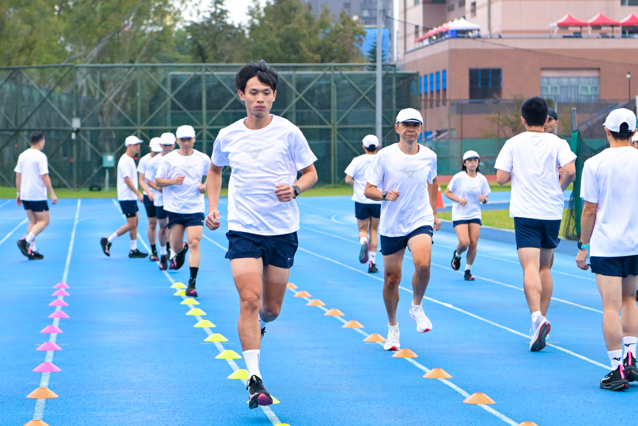 開訓當天大家第一次穿上 MIZUNO NEO VISTA,這雙搭載新科技中底 ENERZY NXT 材質,提供舒適、軟彈的腳感,並加入 SMOOTH SPEED ASSIST(SSA)技術,鞋底的弧形設計為中前足落地的跑者提供流暢的滾動感,成為學員們日常訓練的厚底鞋。
