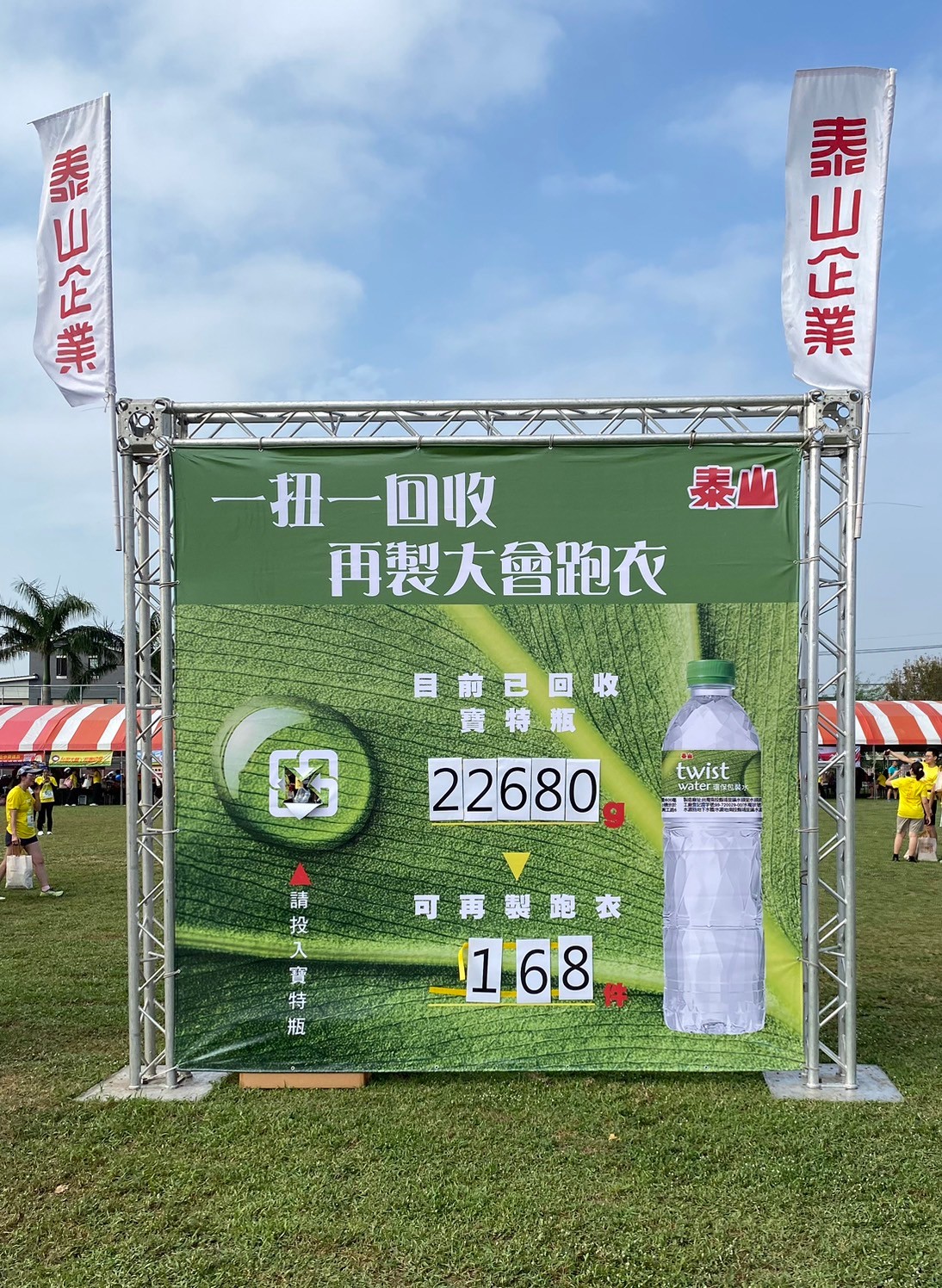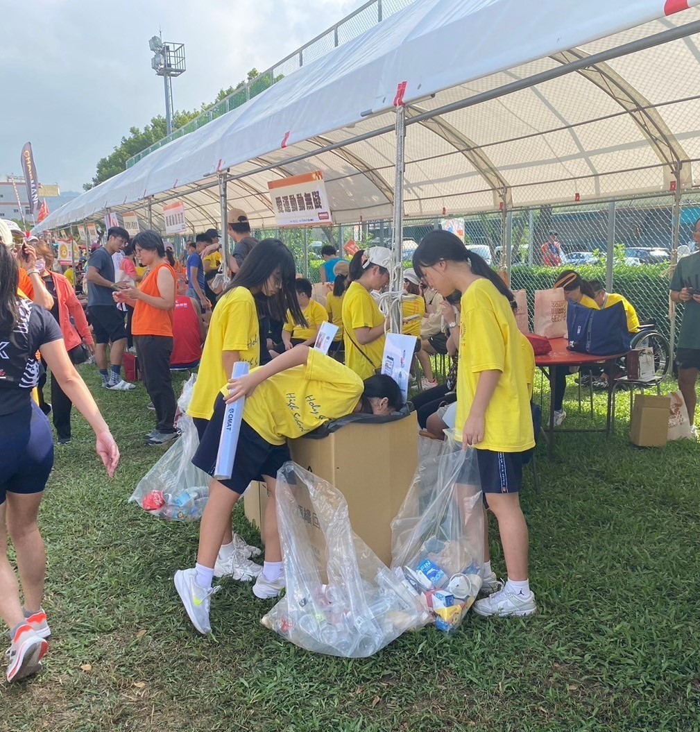 而在廢棄物處理上,會場除了有區分一般垃圾、瓶罐回收等類別外,今年還增設容易辨認垃圾類別的圖示,加上有慈濟志工引導,可教育民眾正確分類,資源回收分類站也交由慈濟基金會負責,志工和在地學校的師生也在會場各處巡視,執行垃圾不落地。賽事現場更結合贊助企業回收寶特瓶,以回收數對照可製作的跑衣件數,具體化其成效。