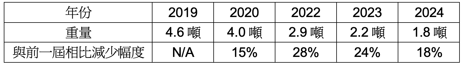 透過各方合作努力,賽事辦理單位的垃圾減量效果顯著,根據統計,2019年的賽事廢棄物為4.6噸,到了2024年已降為1.8噸,5年來減量60%。