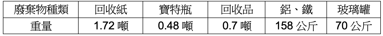 表二 田中馬歷年廢棄物總重