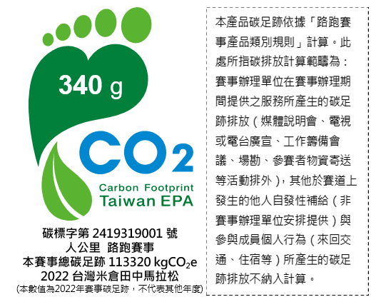 註一:由臺北馬拉松、新北市萬金石馬拉松、台灣米倉田中馬拉松及臺北超級馬拉松四大指標型路跑賽事組成,共同推動環境永續。