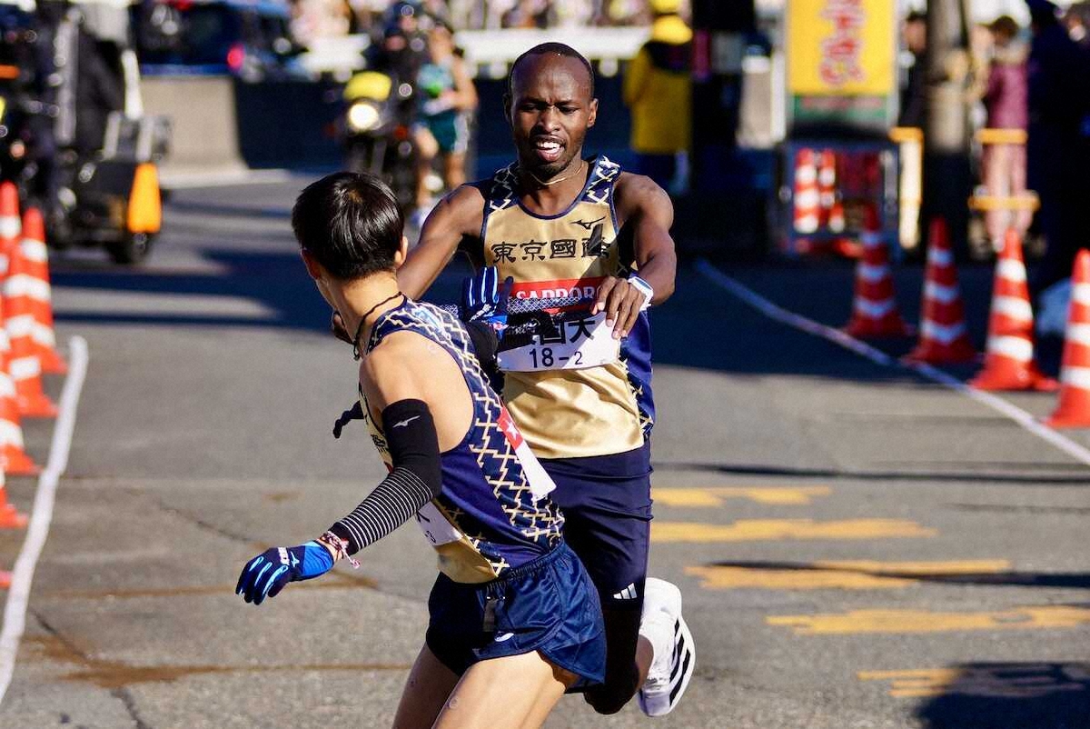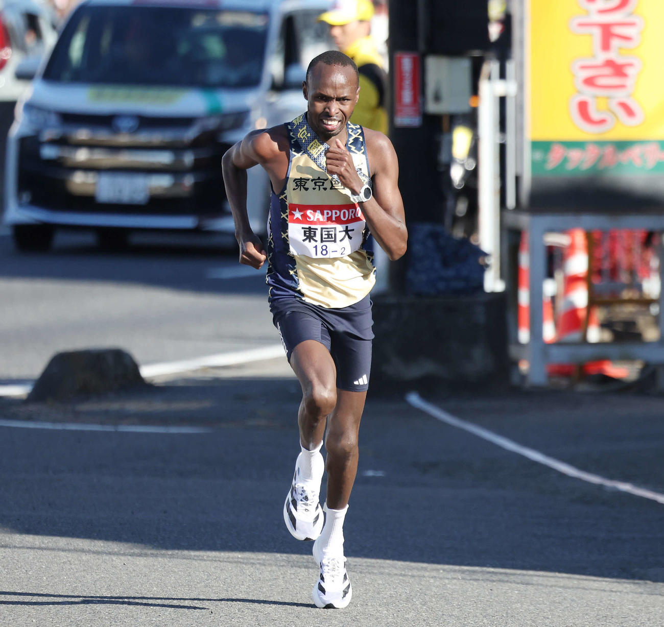 Richard ETIR 擁五千公尺 13:00.17、一萬公尺 27:06.88、半程馬拉松 59:32 的個人最佳成績,是史上速度最快的留學生,他的一萬公尺紀錄也超過日本國家紀錄塩尻和也(27:09.80)。在他接過接力帶後立刻提速,在前三公里時已經超越 10 名選手,隨著里程推進再超兩人,完成 12 人的大幅追趕。