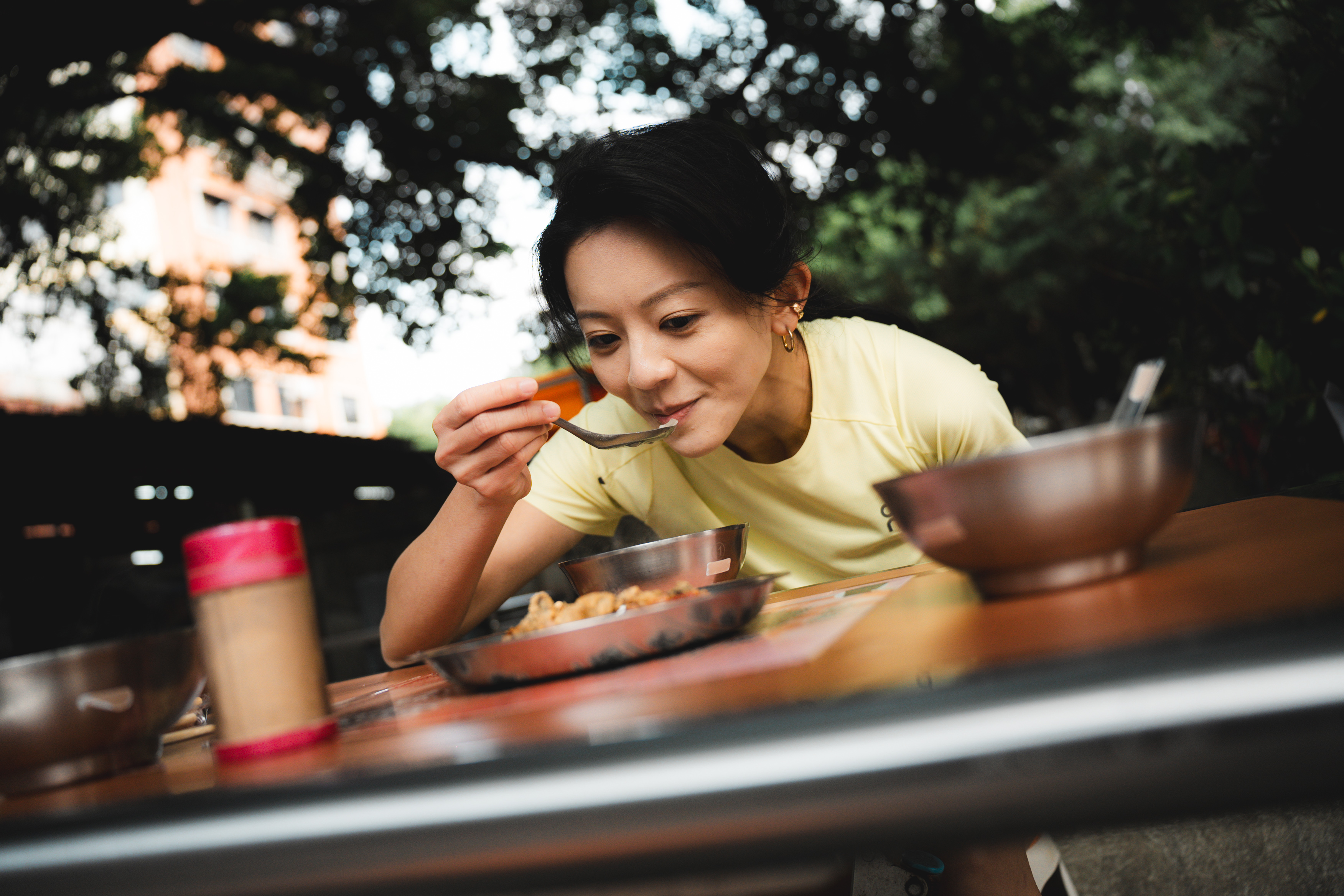 蕾蕾談起美食,眼睛發亮的神情,讓人感受到她為美食而跑的純粹喜悅。 (圖片來源:Daniel)