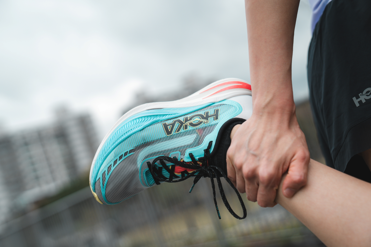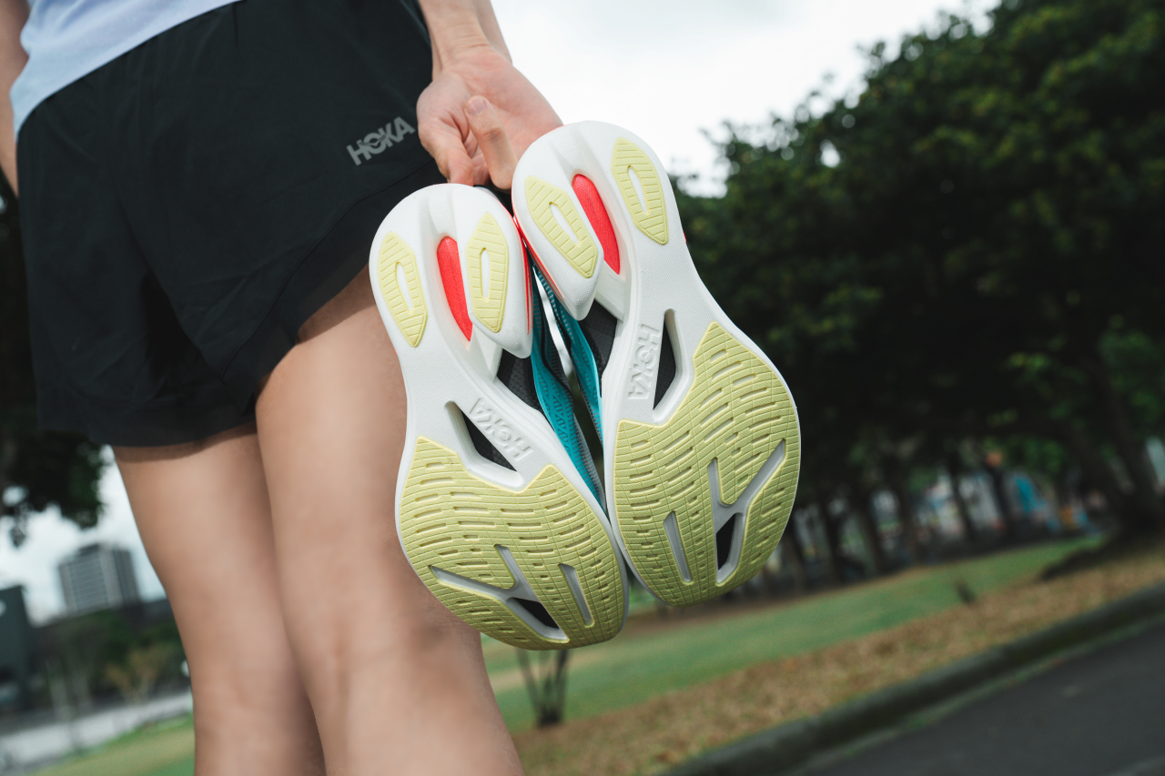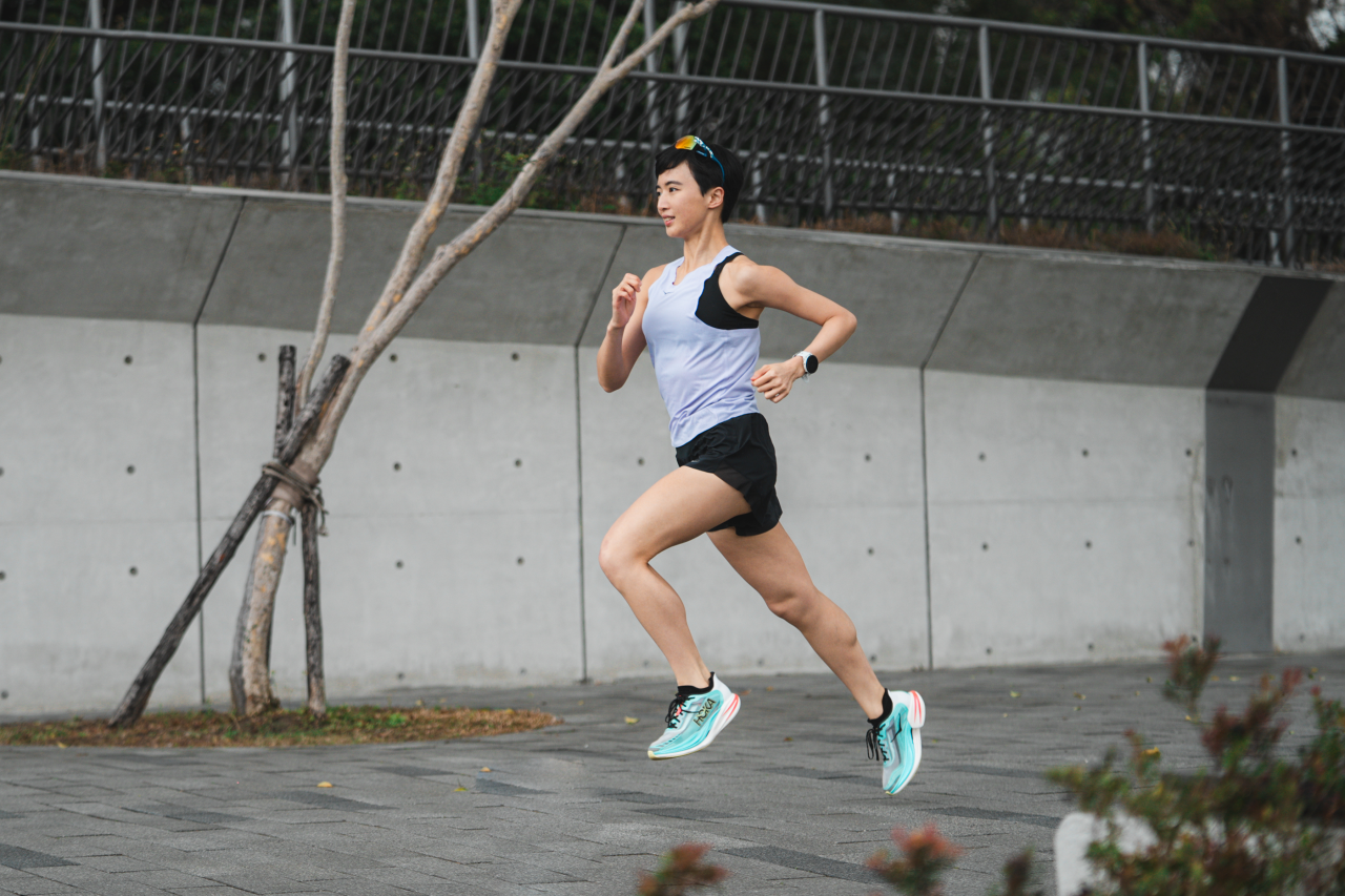 HOKA Cielo X1 2.0 的輕巧設計,在長距離的課表下也毫無負擔 。(攝影:Daniel)