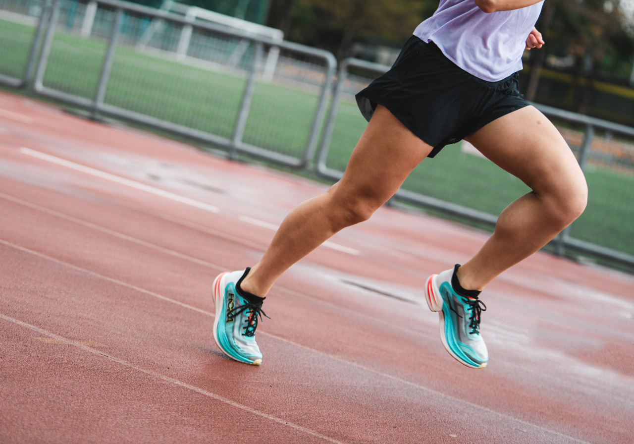 穿上 Cielo X1 2.0 奔馳在操場上,步伐輕盈而有力。在高強度加速、短暫調整,又再度衝刺的過程中,可以感受到在雙腳觸地的瞬間,雙層 PEBA 泡棉立刻做出回應,柔軟卻不失彈性,像是水面漣漪般輕巧地化解衝擊,隨即將能量回饋,推動我向前。