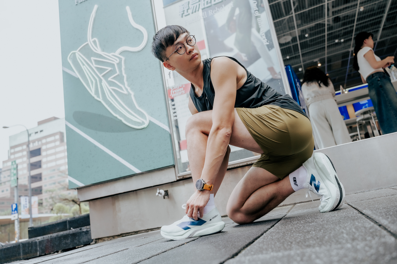 在訓練時,Hank 幾乎都穿著碳板鞋,追求速度與效率。然而,今天穿上 Rebel v4 的他,卻感受到截然不同的體驗,足弓的壓力被溫柔地釋放,一體式鞋舌設計讓他跑在城市中卻彷彿感受不到地面的凹凸不平,穩定感令人驚艷。而 Rebel v4 的外型更是讓他聯想到春天的氣息,輕盈、明亮,充滿生命力。第一次穿上它時,Hank 被它的輕盈感深深震撼,全新的 FuelCell PEBA 中底自然而然地帶出速度,讓他對訓練鞋有了全新的認識,未來,Hank 計劃在長距離訓練中穿上這雙鞋,尤其推薦給那些下班後想直奔田徑場的上班族跑者。