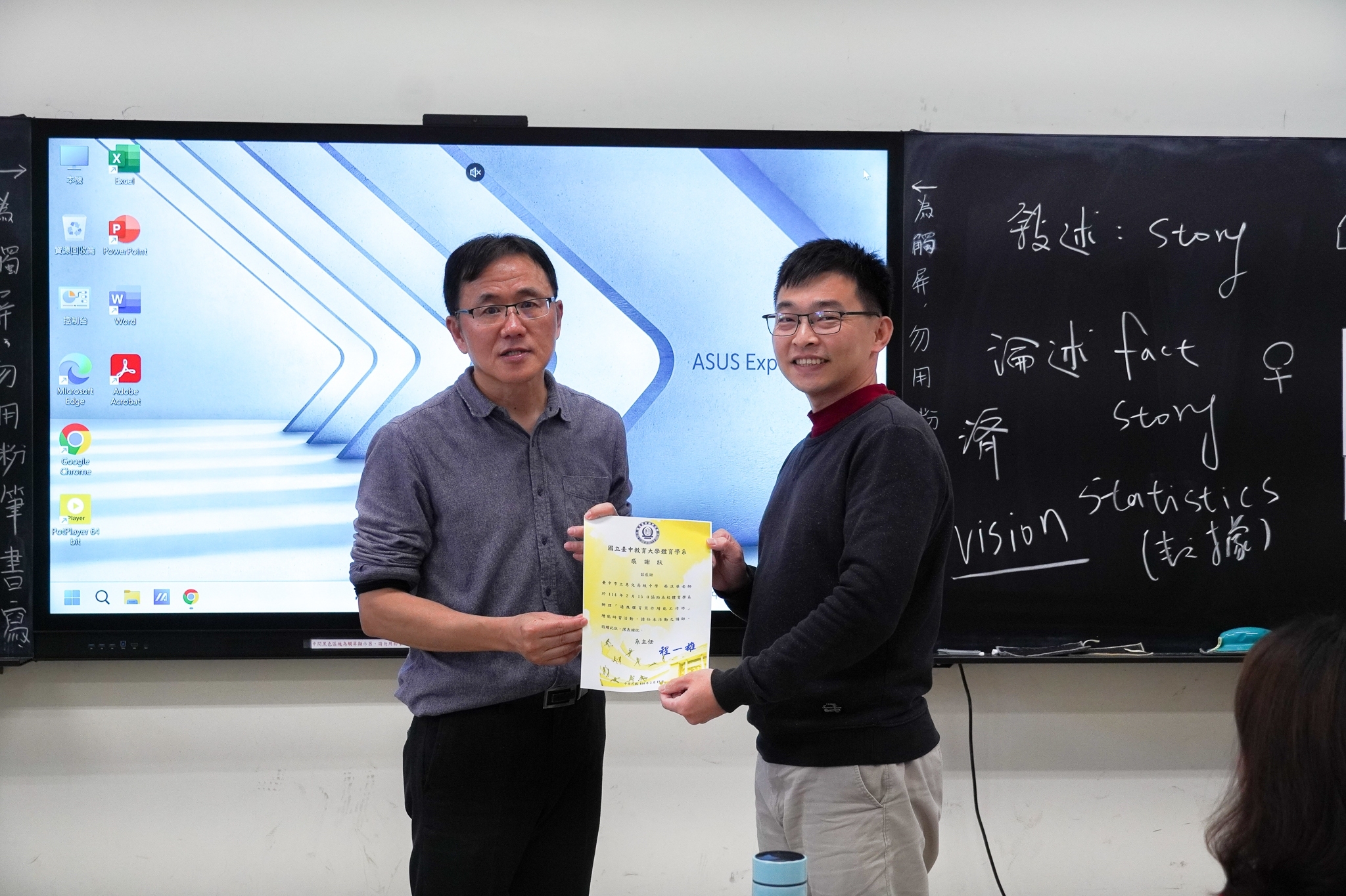 適應體育深耕總計畫子計畫二計畫,協同主持人劉佳鎮老師頒發感謝狀予蔡淇華老師。(圖:國立臺中教育大學)