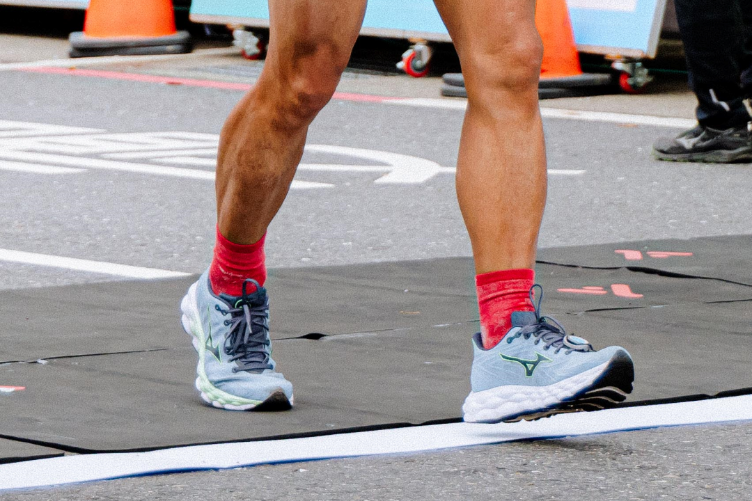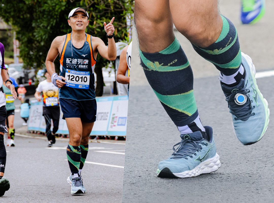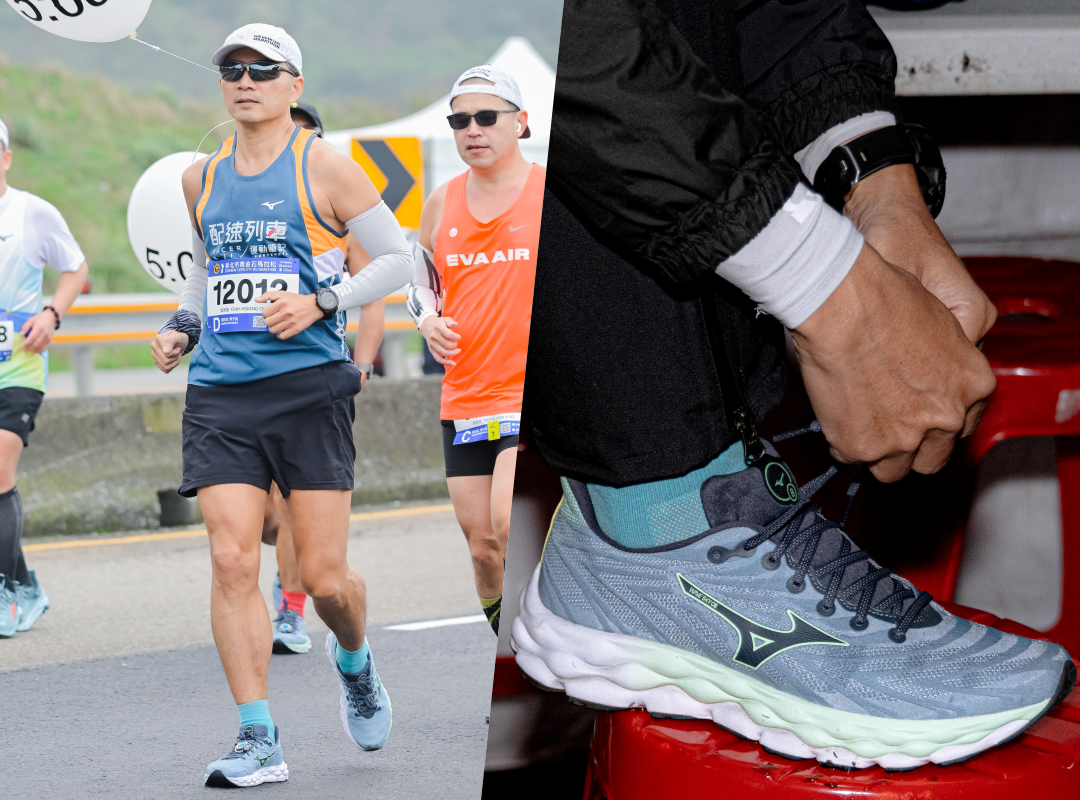 列車長奇育穿著 WAVE SKY 8,感受穩定支撐與舒適緩震,輕鬆完賽。 (圖|Benson)