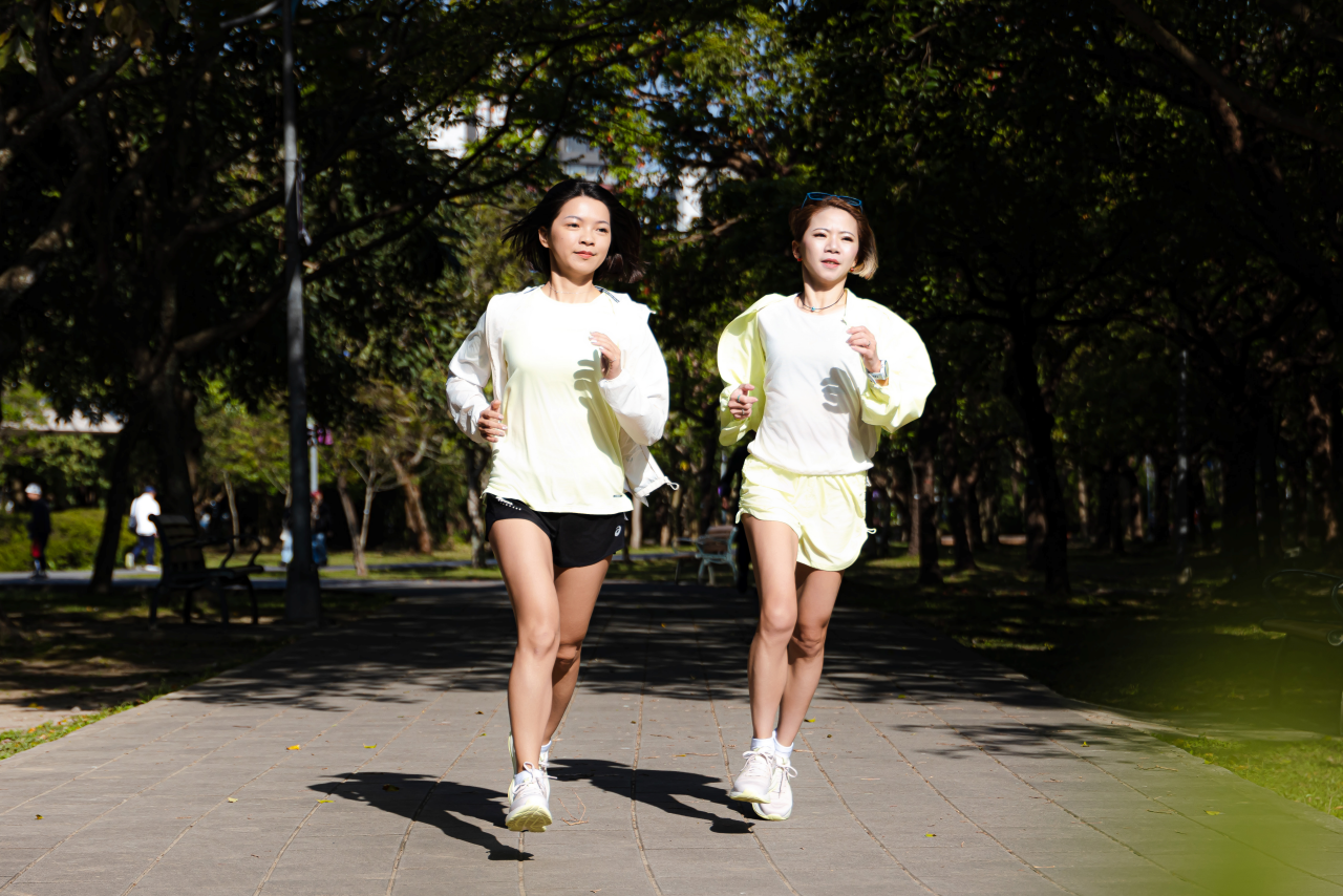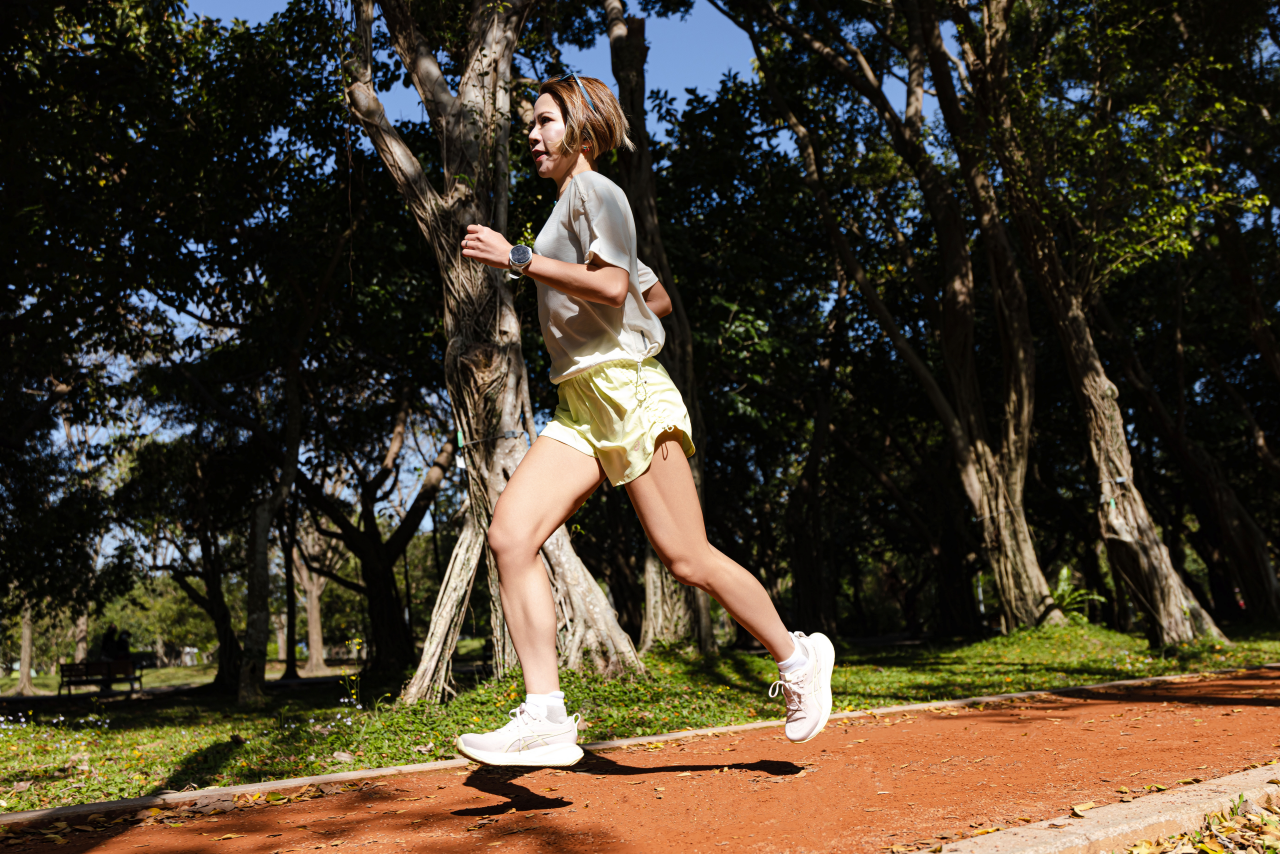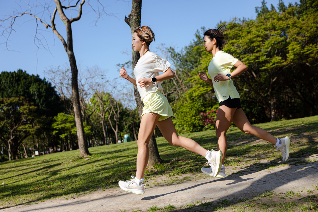 溫暖的春日,穿上 GEL-CUMULUS 27 來一場跑步約會。(攝影:Benson)