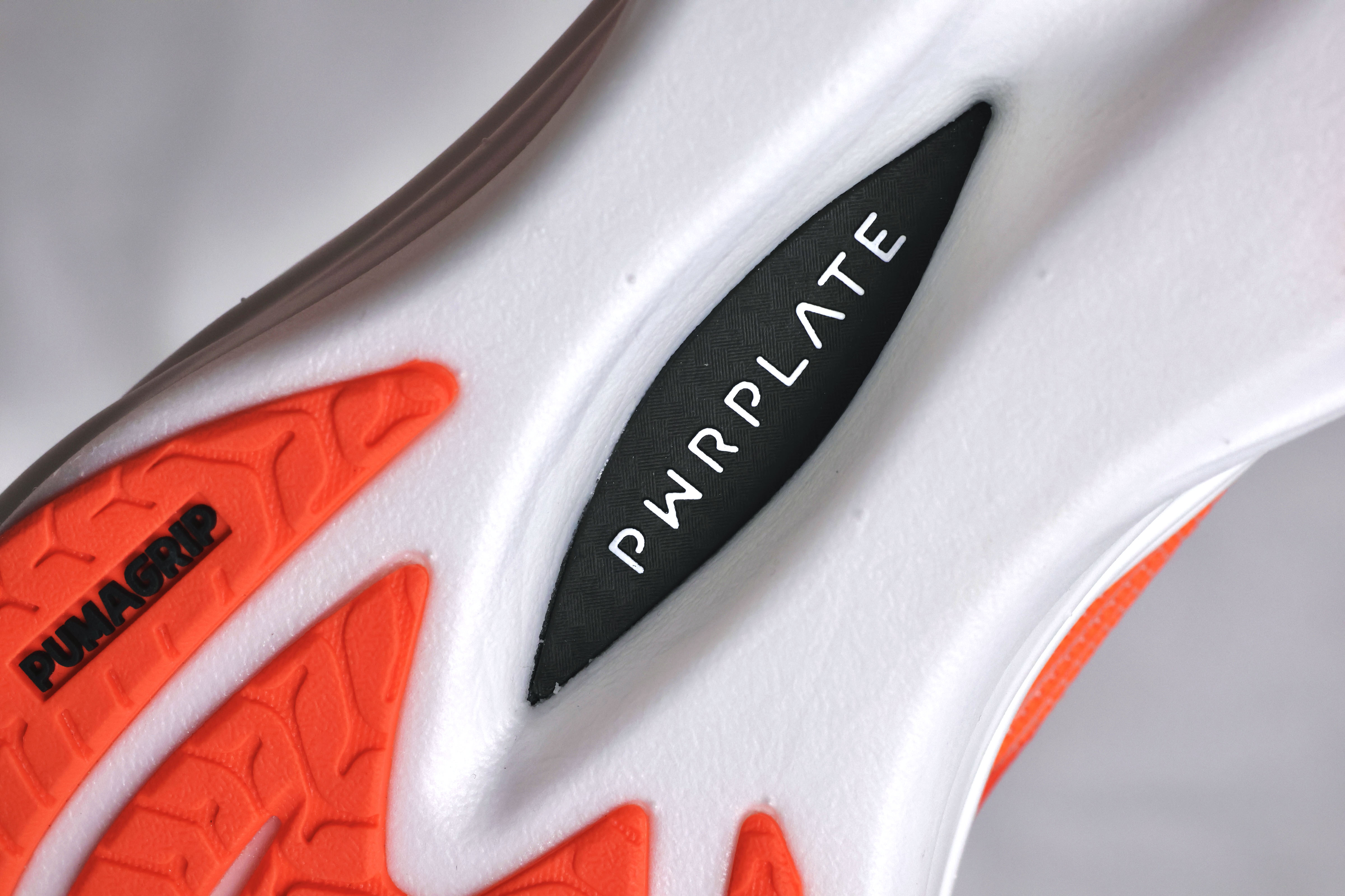 夾在中間的 PWRPLATE 碳板 是這套系統的「發動機」。它不是硬邦邦讓你跳起來的那種碳板,而是一種隨著步態牽引你往前的推力。叉狀設計讓腳趾與碳板之間的互動更自然,特別在跑到後半段感到疲勞時,這份推進力會默默發揮作用,讓你維持節奏、不容易垮掉。