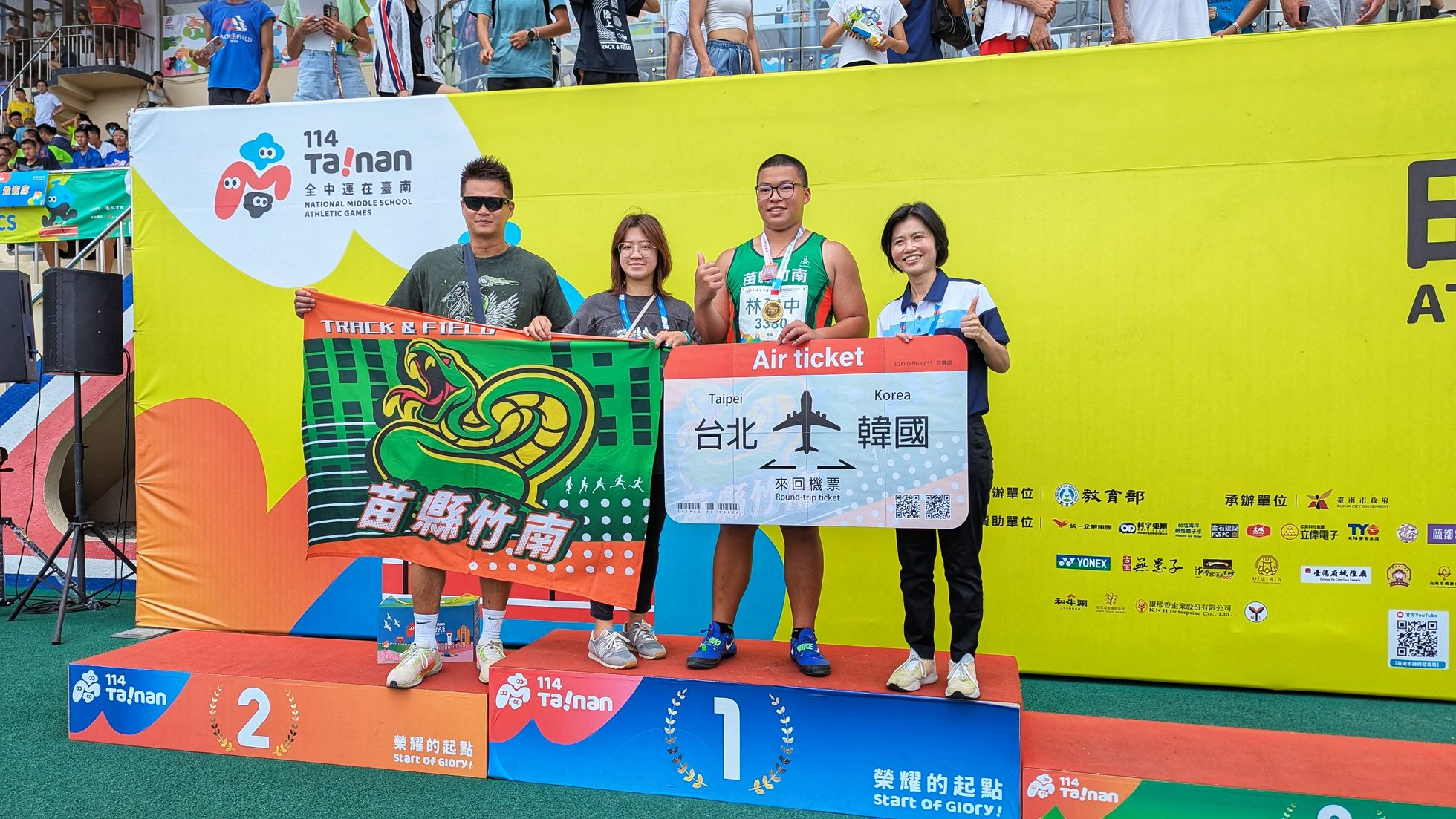 114 年全國中等學校運動會(全中運)田徑項目今(4 月 20 日)於台南市立體育場正式開賽,在首日登場的國中男子組鐵餅決賽中,由苗栗縣竹南國中選手林建中以 49.07 公尺的成績勇奪金牌,成為本屆全中運田徑首面金牌得主。