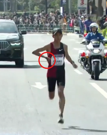 大家好,這是日本前馬拉松紀錄保持者大迫傑在 2020 年東京馬拉松時 38 公里處的畫面,可以看到他把衣服拉高再用手去按着側腹以緩解疼痛感,相信這也是不少跑者在跑步時曾遇到過的狀況,而今天影片就會跟大家討論一下這個問題。