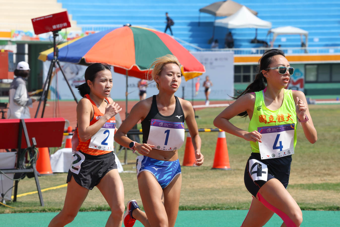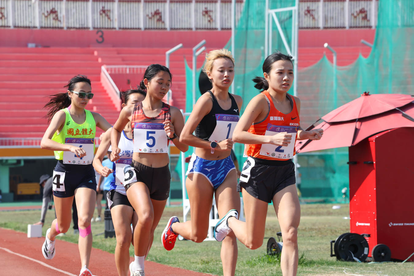 本場5000公尺決賽中,湯樂榆學姐長時間擔任領跑角色,與黃郁媃等選手間的配速與節奏互動,讓徐苡絜得以保守應戰,穩定輸出: