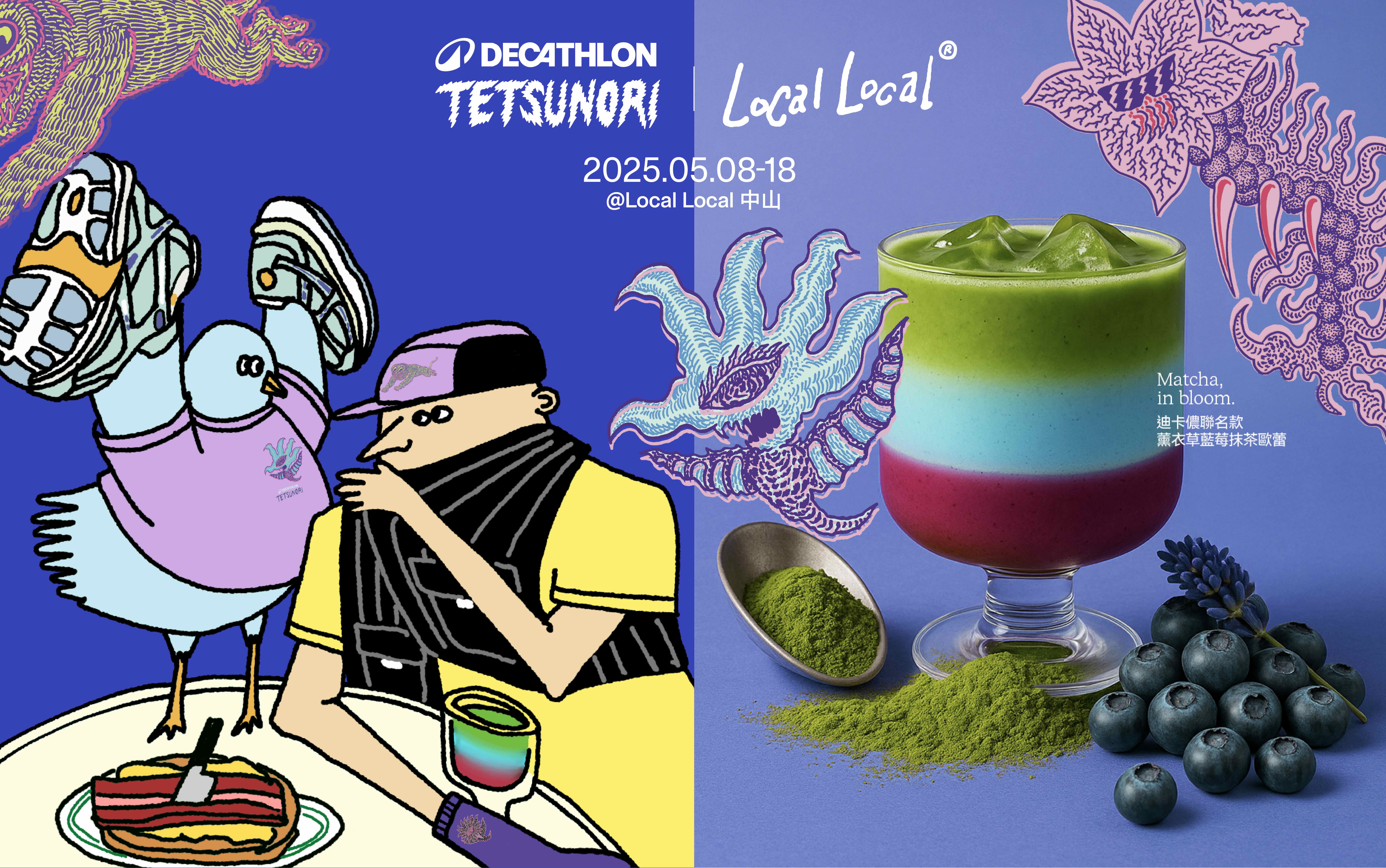 為讓大眾能親身感受這款日系聯名的迷幻時髦風格,特別選在台北市的中山區舉辦了「迪卡儂 Decathlon X Tetsunori Tawaraya X Local Local」運動生活快閃店,5 月 8 日至 5 月 18 日為期 10 天快閃登場,同時有 Decathlon X Tetsunori Tawaraya X Local Local 限定薰衣草藍莓抹茶歐蕾飲品,必定要現場體驗全新的運動生活風格系列所帶來的時尚態度。