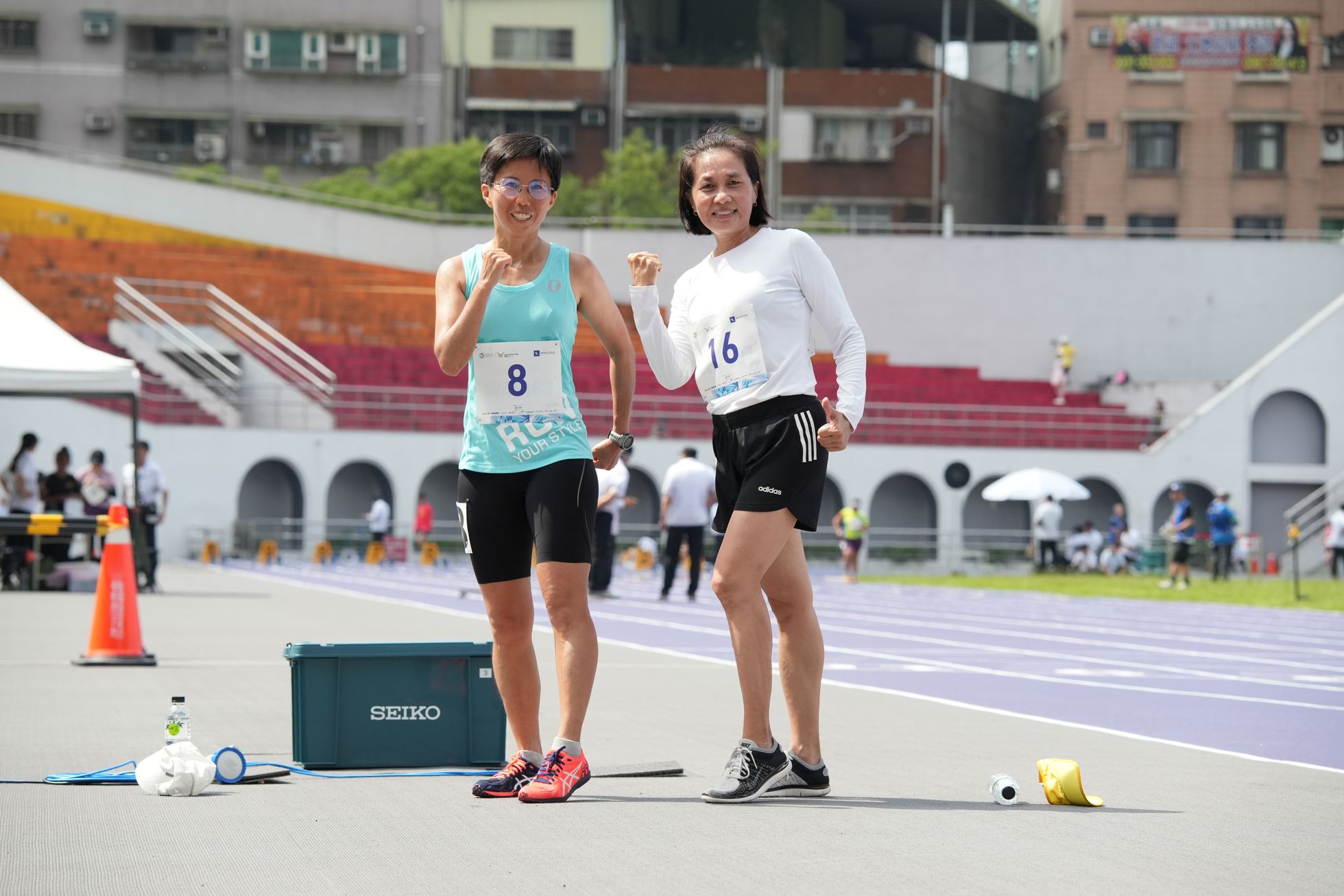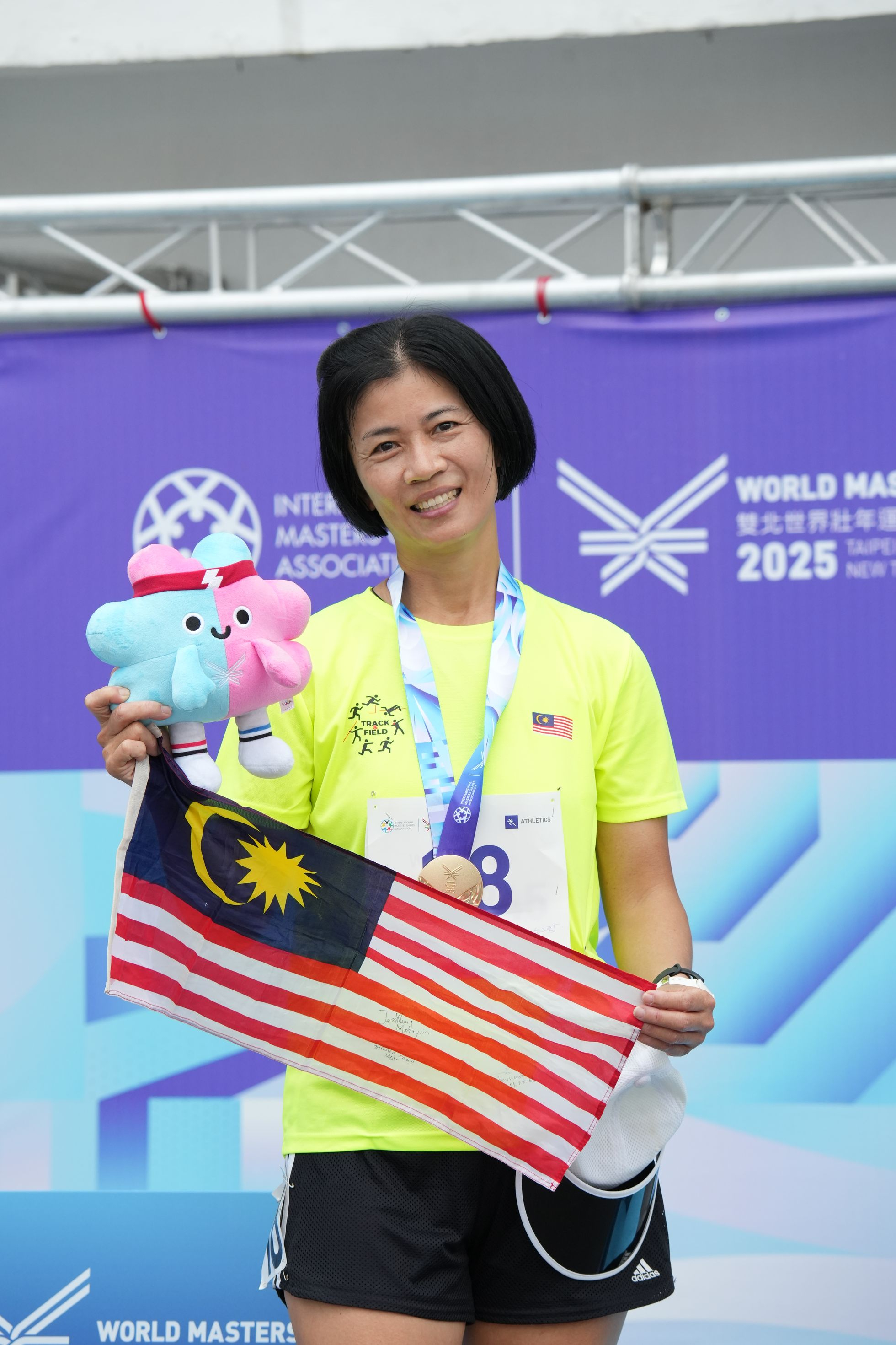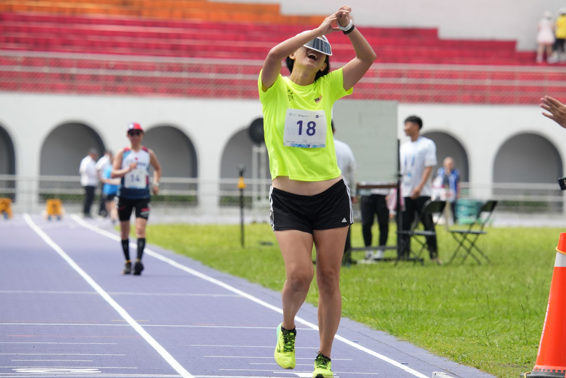 「台北今天真的很熱,九點多就像馬來西亞的中午一樣。」她笑說,但仍非常享受今天的比賽過程,「從38歲開始接觸競走,到現在53歲,從沒停過訓練。」她此次也與丈夫一同參賽,「我們中學14歲就認識了,現在一起來參加世壯運,還有報名全能項目,真的很有意義。」