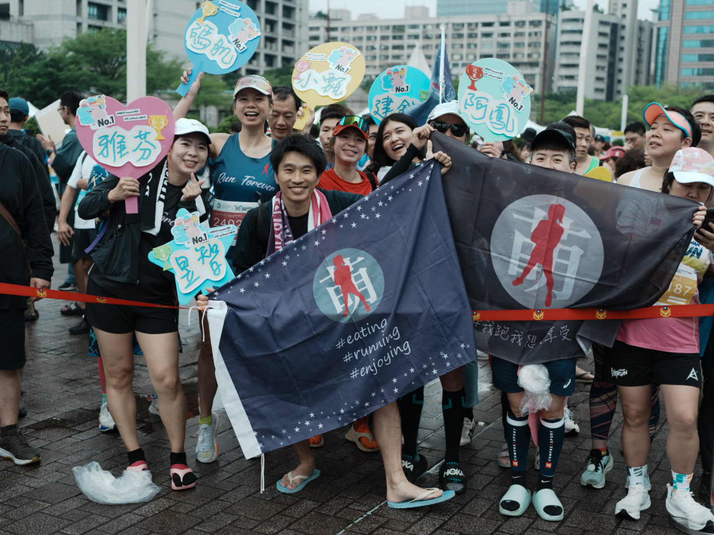 早晨細雨飄落,空氣中混合著濕氣與緊張氣息。起跑線前,選手們神情專注、肌肉緊繃,蓄勢待發,這場 21 公里的城市巡禮,即將展開。