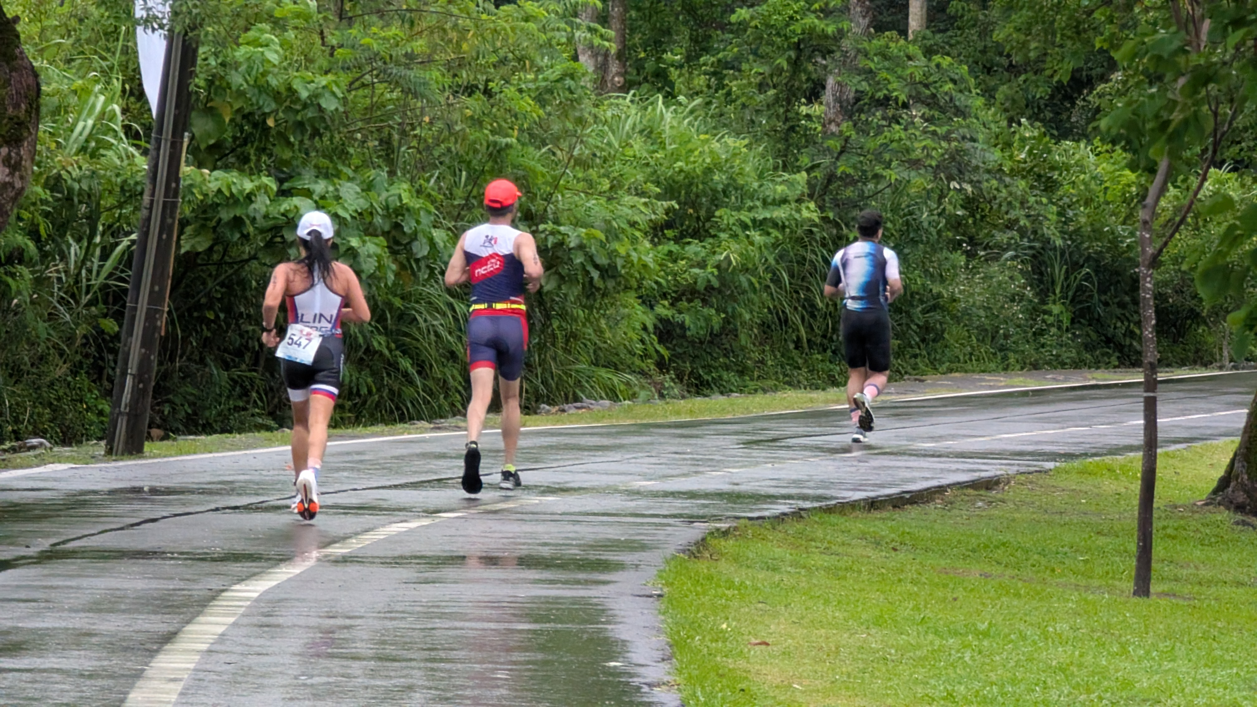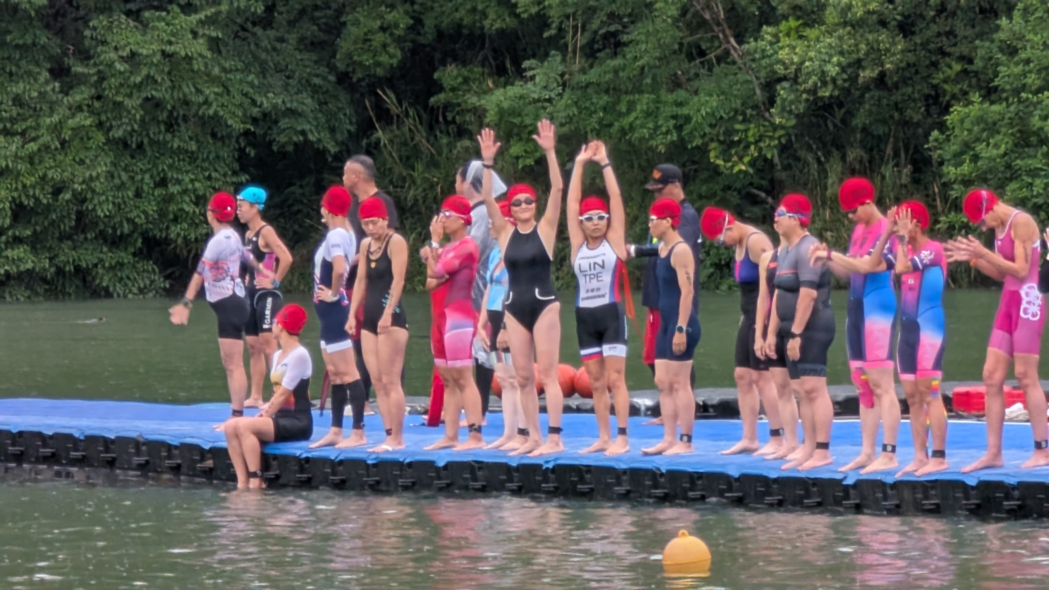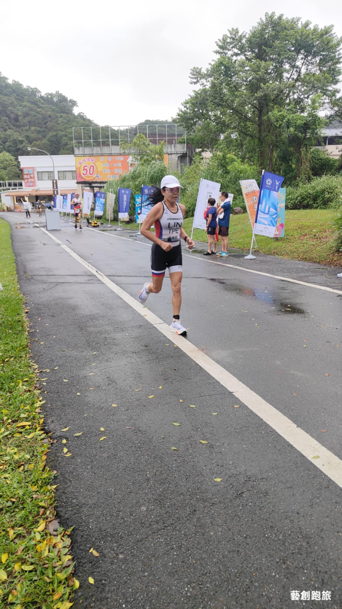 鐵人兩項當日氣候突變,從原先的大太陽轉為降雨、降溫,林詠晴笑說:「鐵人們原本做好曬太陽的準備,結果等開賽的半小時裡一路淋雨。」但她也坦然:「水是溫的、雨中跑步其實舒服,只是地滑要小心,這也是比賽的一部分。」