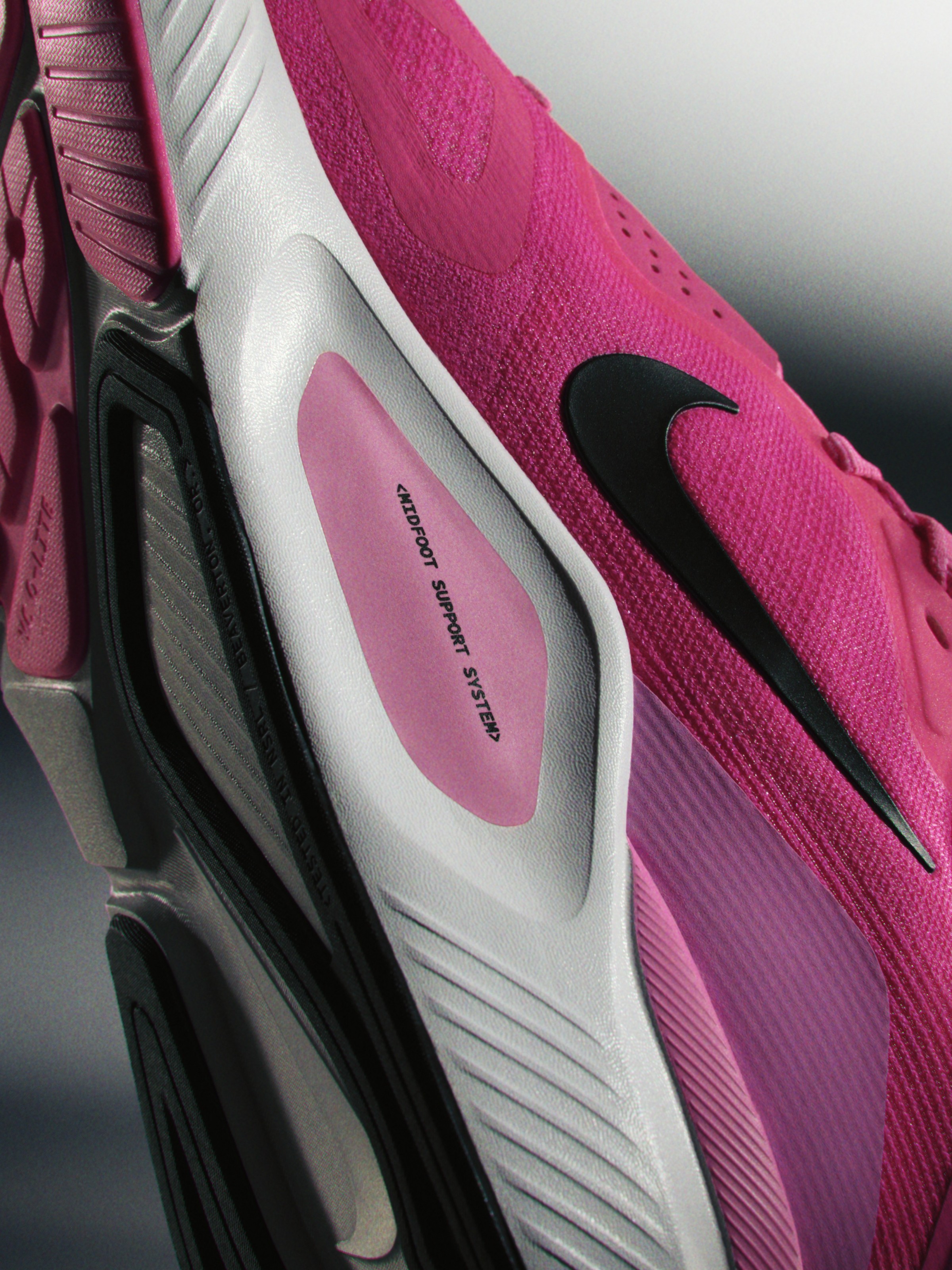 該系統融合了全新的中底穩定性方案,代表 Structure 系列在 Nike 穩定型緩震跑鞋設計理念上的一次大膽革新。Structure 26 首次採用全掌 ReactX 泡棉中底,取代傳統穩定跑鞋常見的硬質材料或剛性內側穩定結構。這種設計既能為跑者提供所需的穩定性,也帶來了更柔軟順滑的腳感,全面提升跑步過程中的舒適度與流暢性。