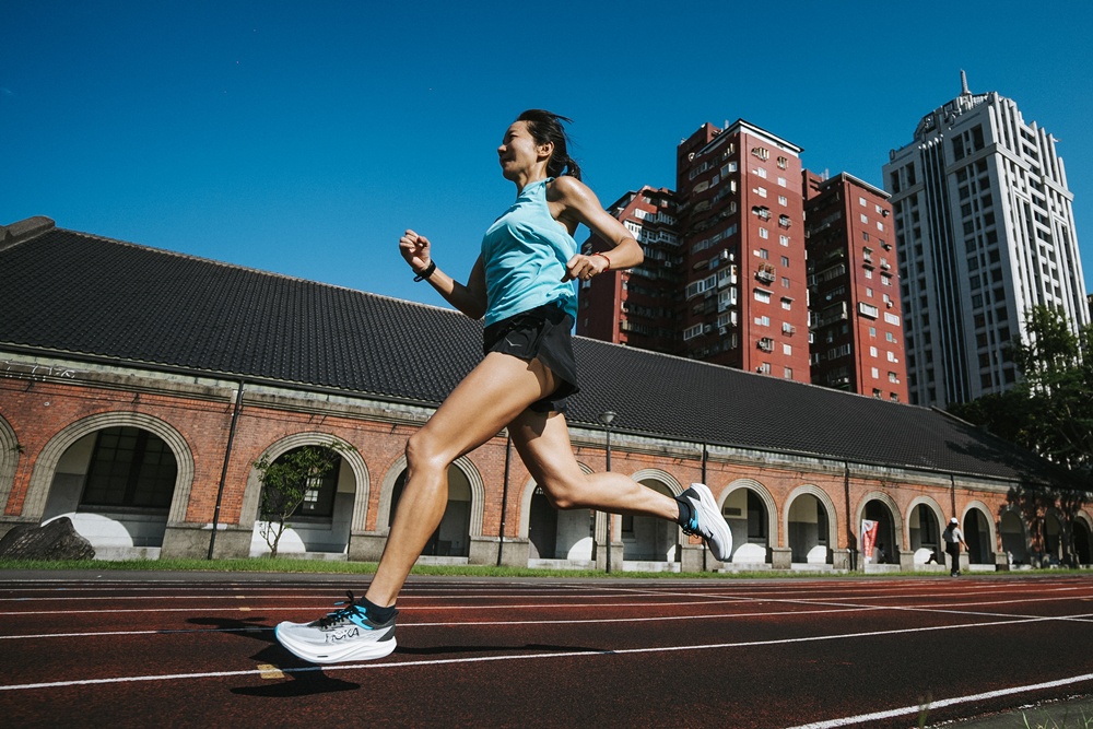 ROCKET X 3 在 PU 場上進行 tempo run,更能凸顯出中底彈又穩的優勢。(圖片來源|麗絲)
