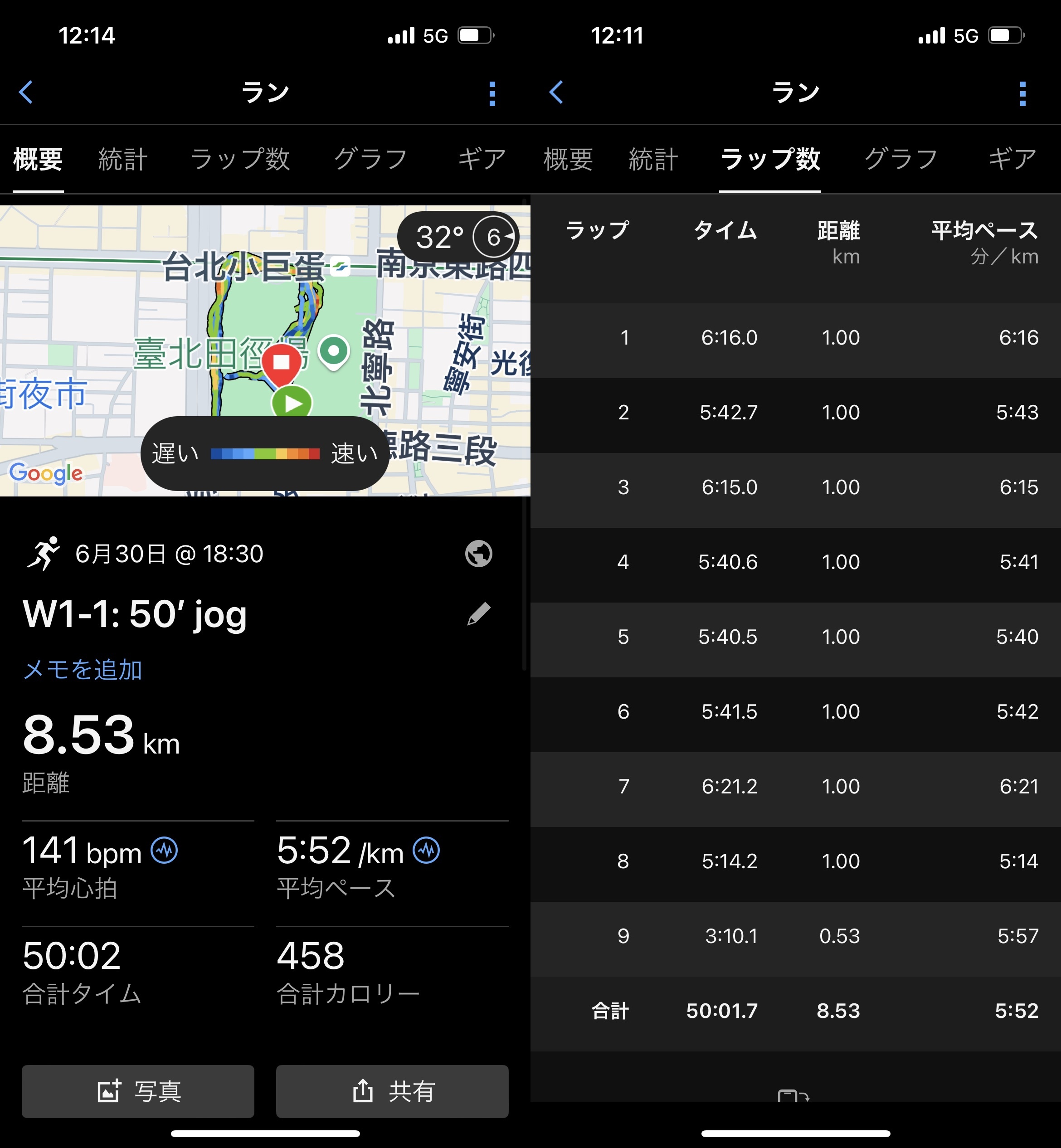 當天本來打算要到北田跑 800m 間歇,沒想到遇上活動場地不開放,只好繞著行人和自行車都不少的小巨蛋周圍跑,不過也可以測試一下在不同地面的腳感(包括各種不是很平整的地磚和柏油路)。