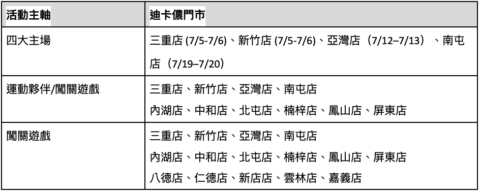 | 迪卡儂北中南 15 家店串聯資訊: |