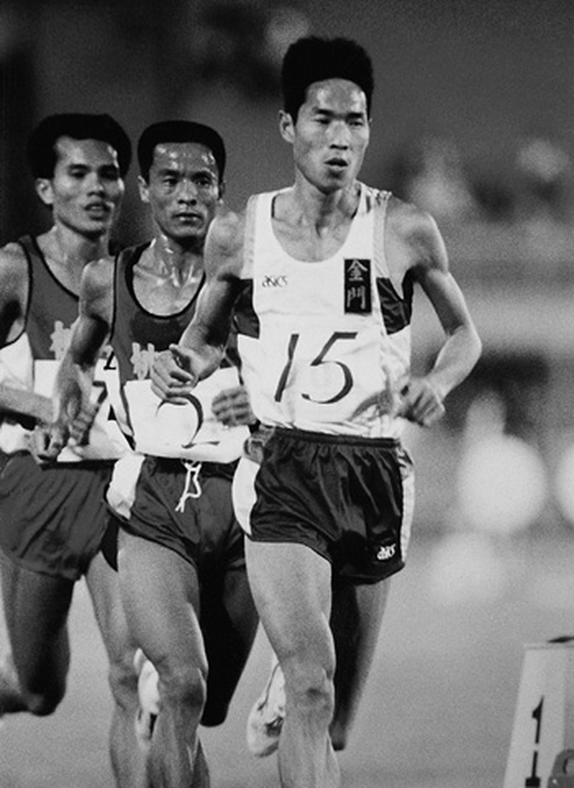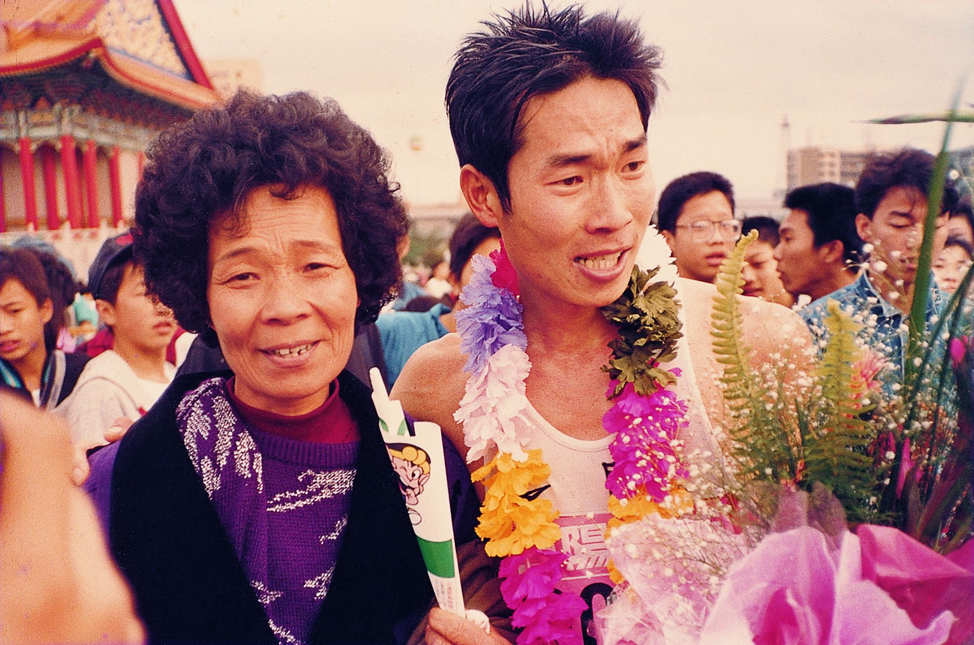 1989年,旅日後首度返國參加臺北馬拉松,以21715破全國紀錄,獻給自金門到場加油的母親。 圖|時報文化