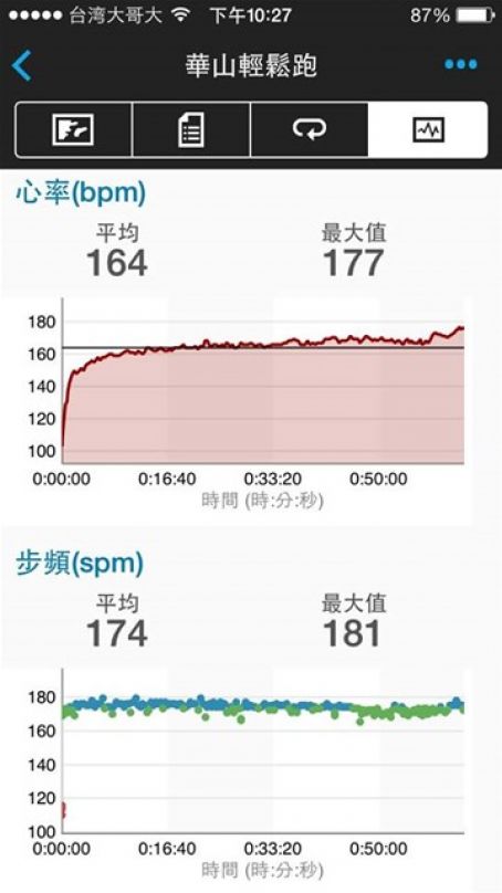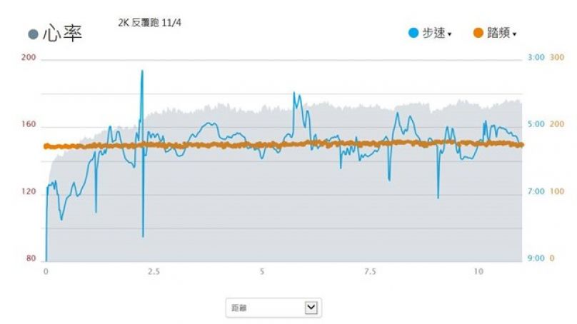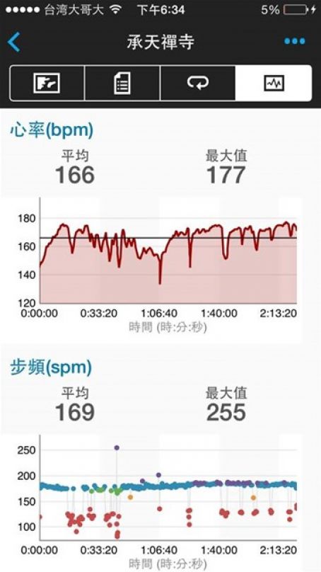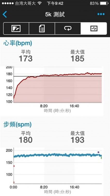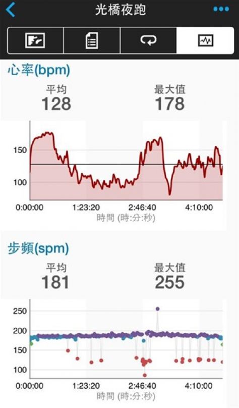 平均步頻 181 spm; 最高步頻 255 spm