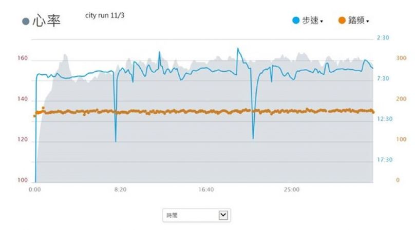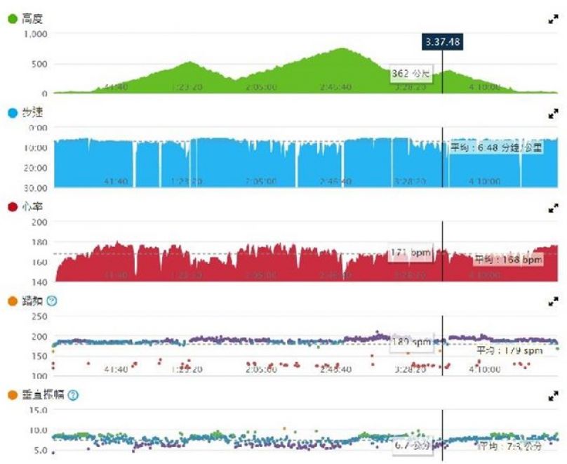 上傳了跑步信息, 想看明細資料, ?只看到心率及步速資料, 而踏頻,垂直振幅, 及觸地時間都是空的. 而且, 在31公里我的步速達15分40秒, 感覺是不是2公里合計了, 因為我今天可沒有在補給站休息或當步兵那麼久的. 是否是GPS沒啟動, 我就按錶開始跑呢? 還是我以和手錶藍芽連線, 資料沒有傳完整呢? 今晚再找時間詳細看一下資料.
