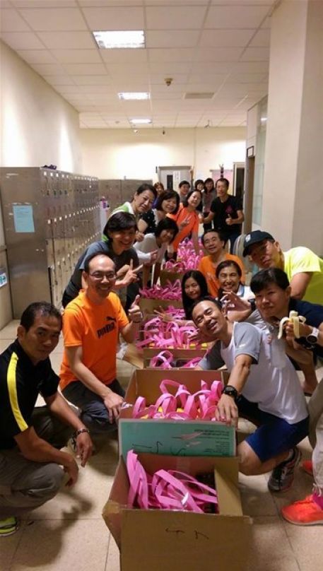 由於今年由政大主辦, 練跑後, 大夥到商學院協助物資整理; 號稱”史上最鐵最貴校園馬代工”, 各公司的管理者快速按計劃3小時將選手物資, 及完賽禮750份分裝完畢, 歡迎各校選手10/19政大操場見~