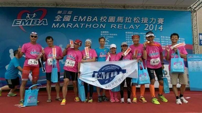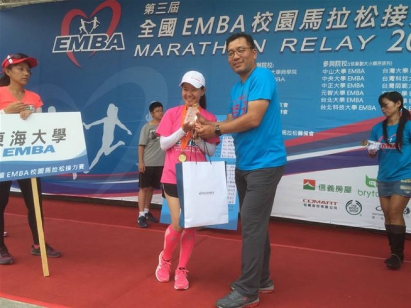 本週日將參賽第三屆EMBA校園馬接力賽, 今年由政大主辦,我參賽本次全馬競賽組第三棒(3, 6, 9棒必須是女性), 代表政大出賽。去年在台大比賽,政大拿到第二名, 且距第一名台大的成績10多分鐘之多,今年, 我們希望把冠軍獎盃留在政大。由於被列入全馬競賽組隊員之一, 務必小心不得受傷, 並在比賽中全力以赴.