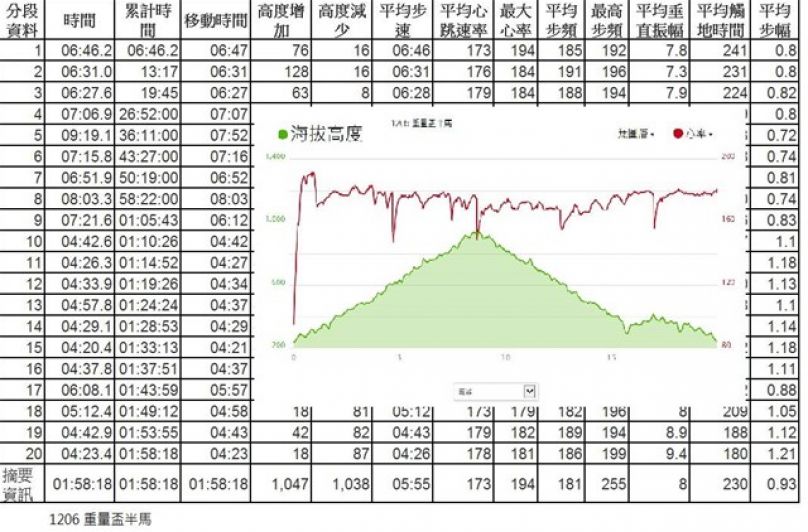 本週後半段的二次跑步, 一直留意黃教練及Daniel提醒的腳後拉過大的調整, 儘量壓下腳跟往前邁開腳步. 跑完大溪的感覺是, 我的步幅好像變小了. 原本6分速的步幅約是90多公分的步幅, 大溪馬的平均步幅只有80公分, 也可能是山路多一些, 而我的下坡一向是步幅小的. 但好的是我的腳步聲似乎沒有以前那麼大聲, 阿基里斯鍵沒有感覺酸累, 回家按摩後腿部的緊?就舒緩了.