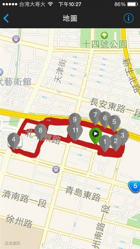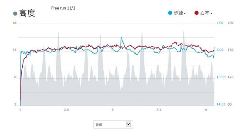 起跑操作都沒問題, 2公里暖身後, 有提示音進入第二階段反覆跑. 開始有速度設限時, 跑出來的提示, 好像是每小時跑多少公里的數字, 11.0-11.3, 我一時沒法換算到底速度是在目標範圍內?還是跑出範圍? 因此不斷的看手錶想弄清楚. 跑到應該是5:40分/公里的1公里時, 仍然困擾於速度感不強的自己, 還是弄不清提示聲下的數字顯示的11.0?, 到底有沒有跑在5:40.
