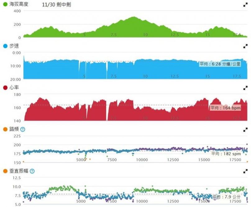 P.s. 周三我有帶心率, 但是重直振幅的數據沒有跑出來喔~又罷工了..