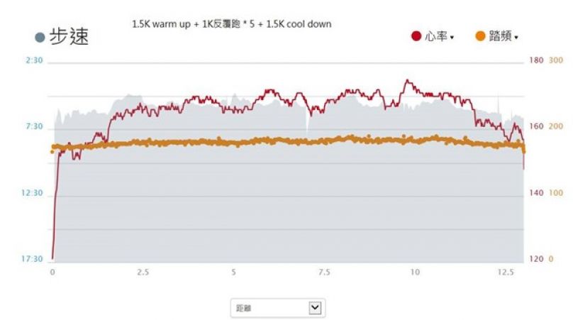 周二(2公里反覆跑): 12.5K,